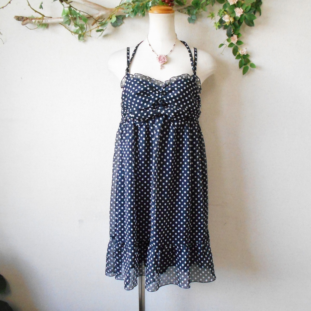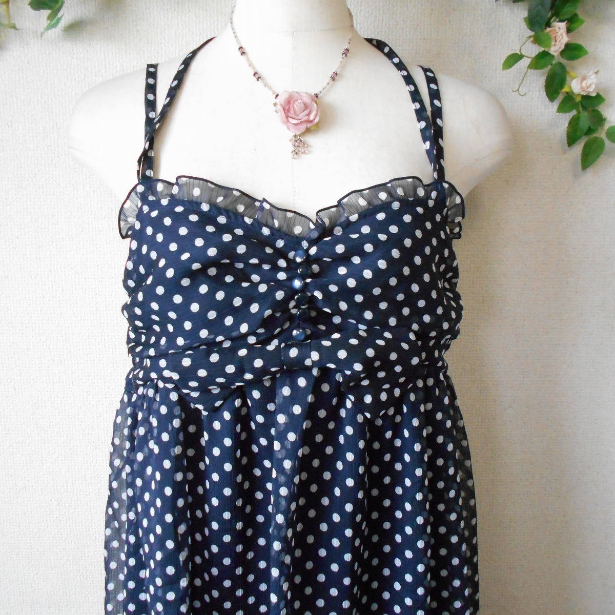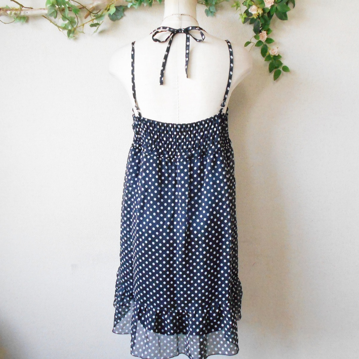【ポイント】レストローズのキャミチュニックになります。お色はネイビーベースで白のドット柄が全体に入っています。