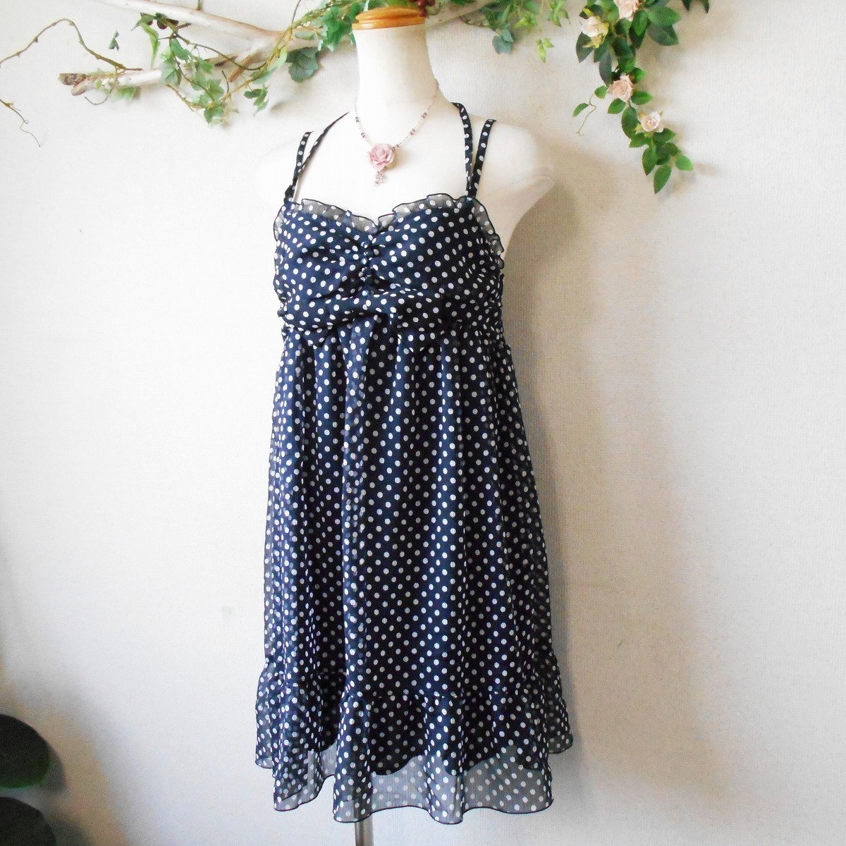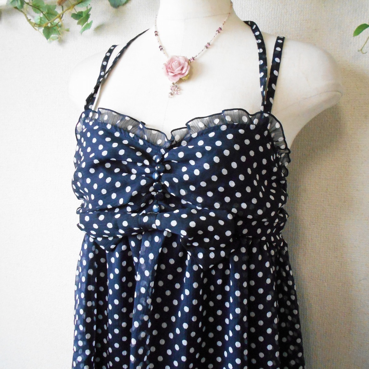 レストローズ LEST ROSE 水玉柄 の 可愛い リボン 付き キャミ チュニック ワンピース 2