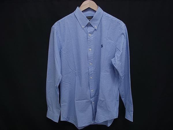 ■極美品■ POLO RALPH LAUREN ポロラルフローレン コットン チェック柄 Yシャツ 長袖 トップス サイズ L 洋服 ブルー系 DI7162