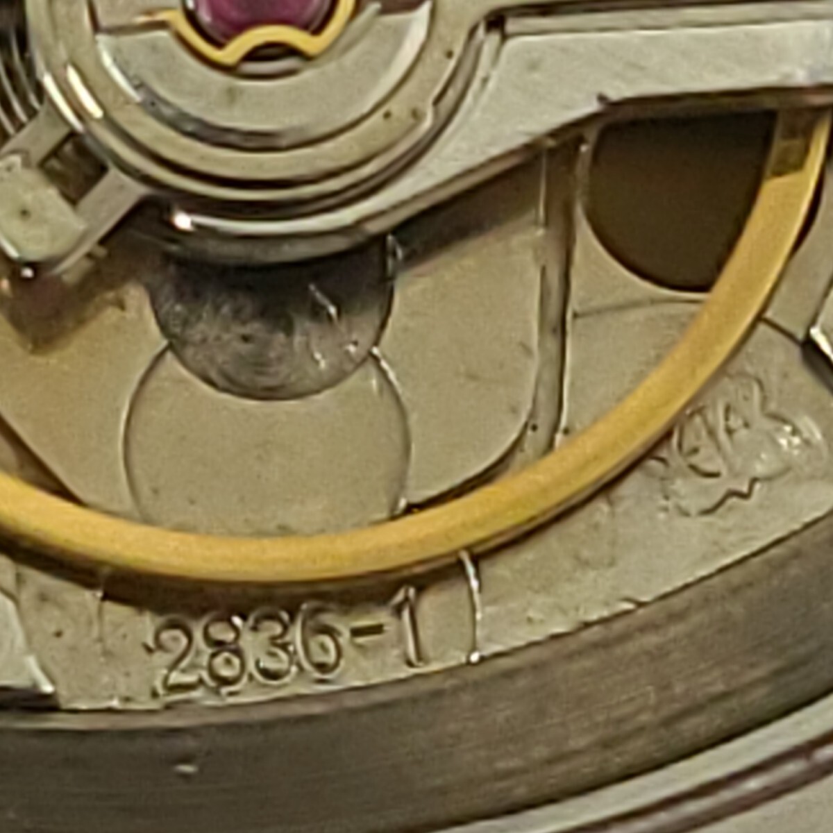 ムーブメント :ペラルージュ加工が美しいCal.2836にETA刻印ムーブメントです。