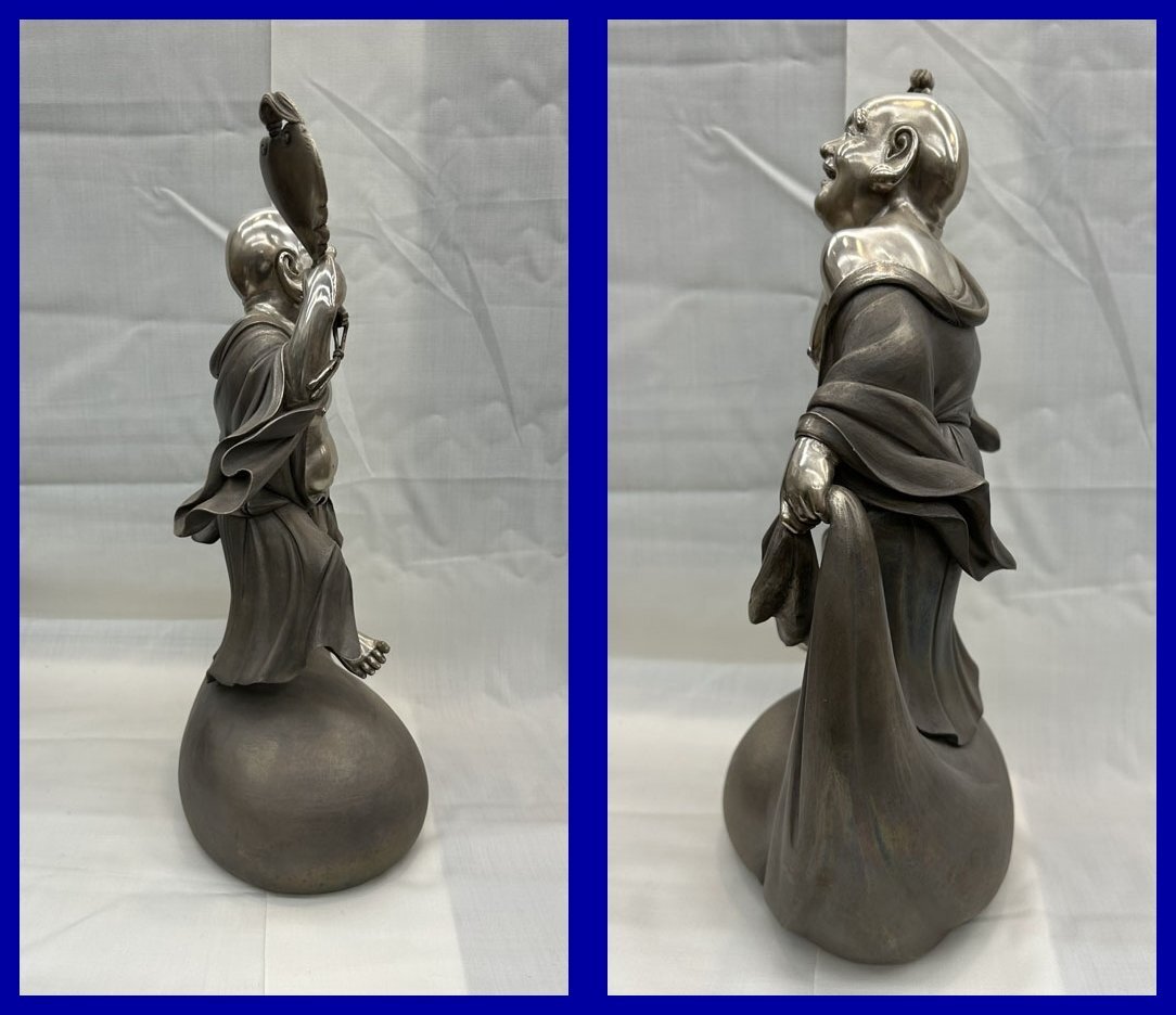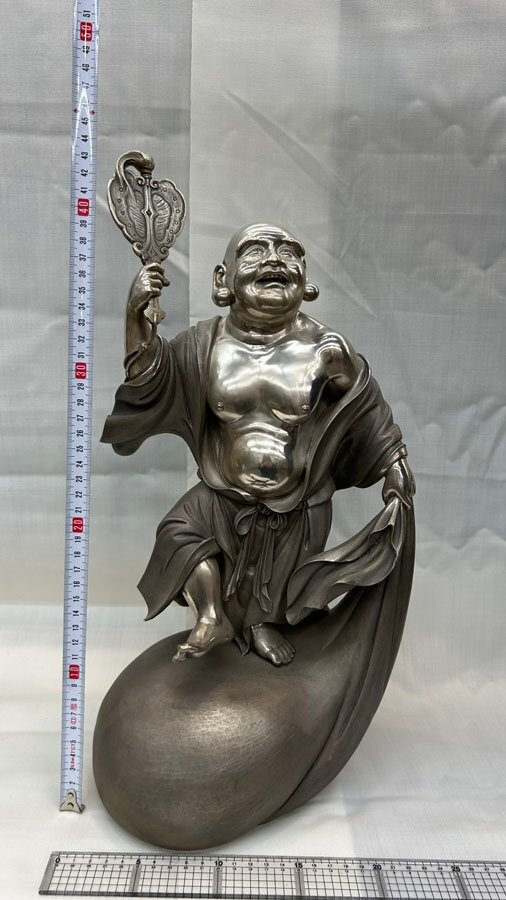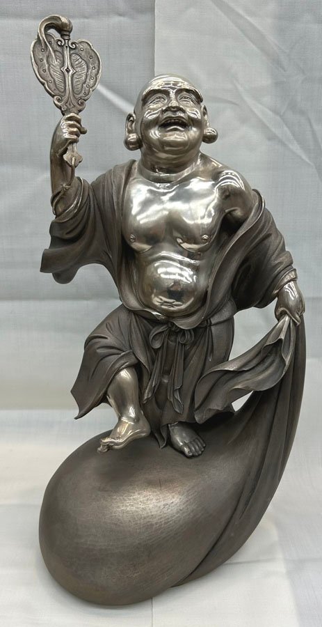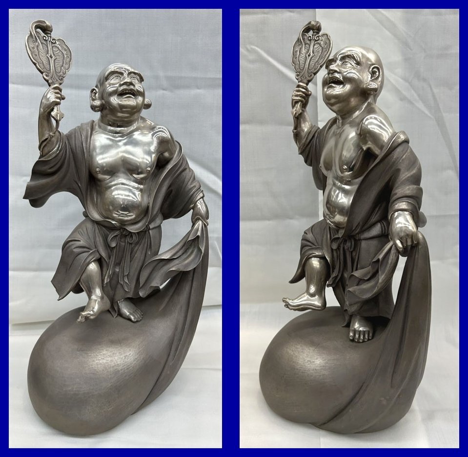 高村光雲作 本物 純銀製 布袋様 6153.3g (純銀の刻印あり)布袋様/大黒様 七福神 置物 商売繁盛 開運招福 純銀製 縁起物 骨董品