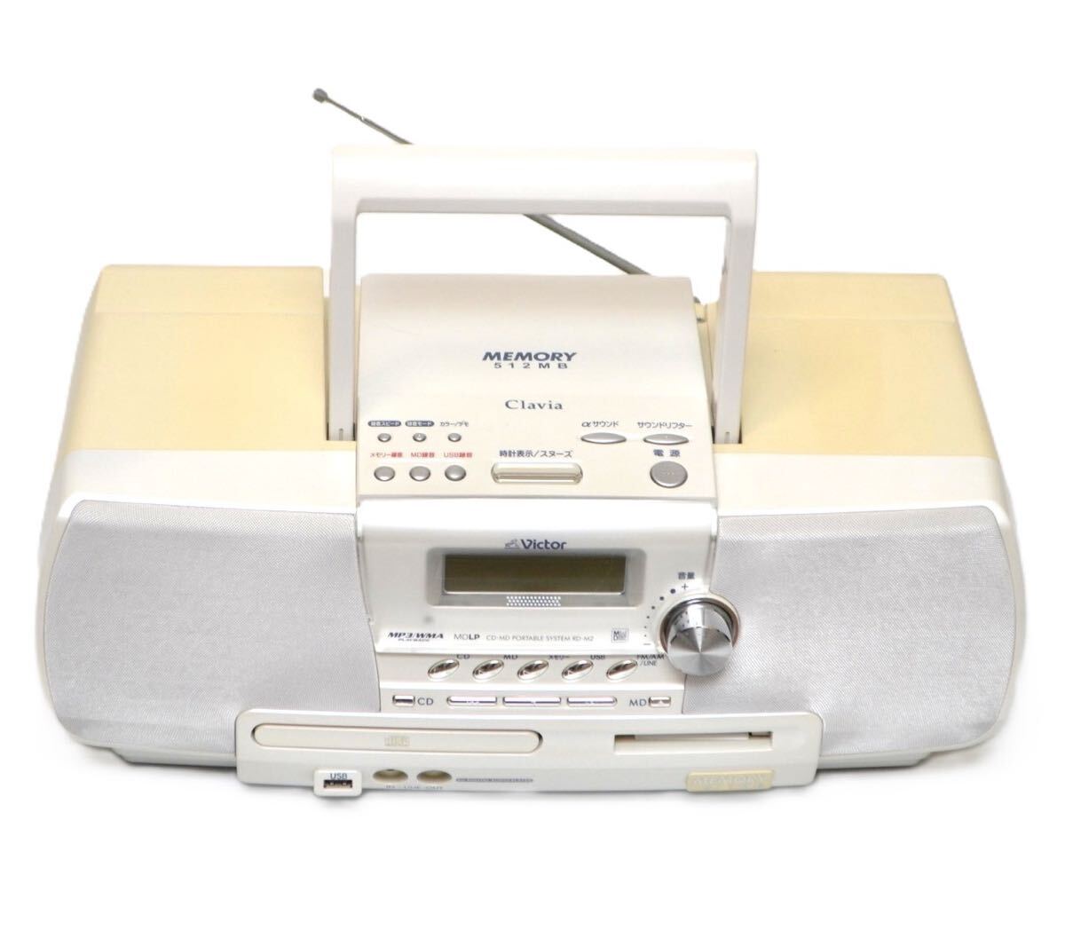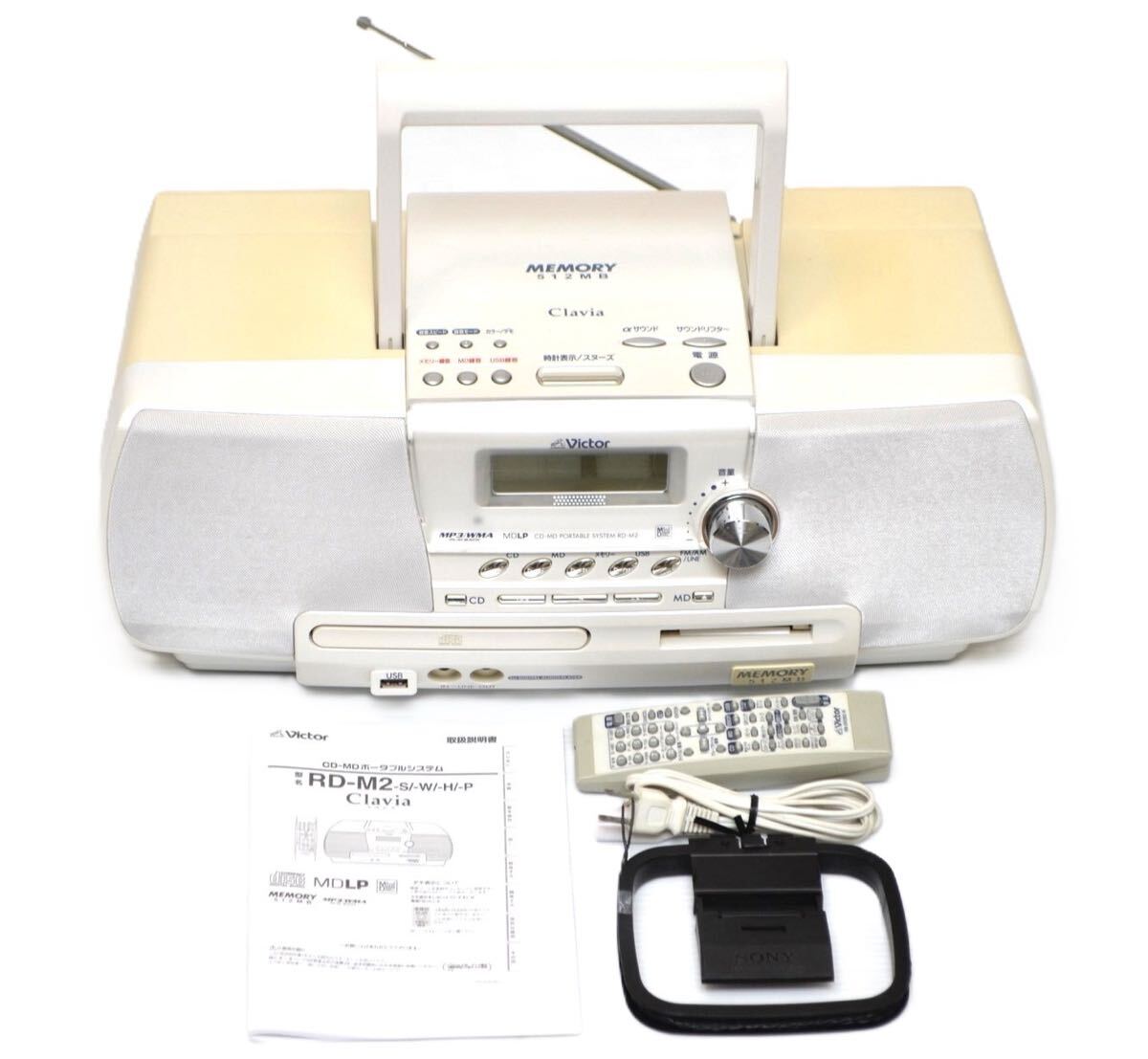 【動作良好/純正リモコン付】JVC Victor ビクター RD-M2-W RM-SRDM2-W Clavia クラビア MD CDラジカセ メモリー ポーダブルシステムコンポ