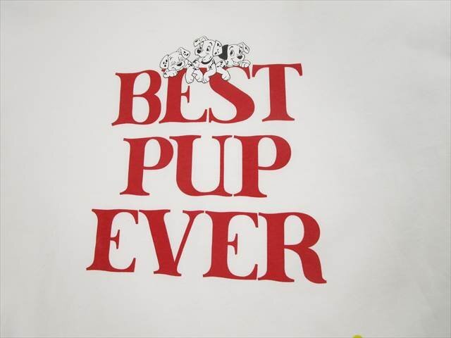 ドロップショルダー 五分袖 ラウンドネック Tシャツ L ホワイト地 レッド 英字プリント&ホワイト×ブラック 101匹わんちゃん 【メール便可】