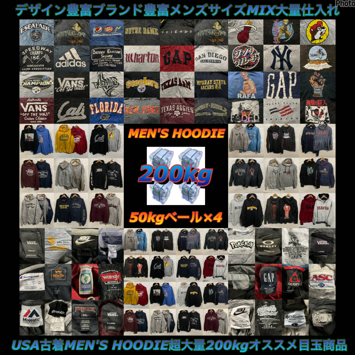 アメリカ直輸入の、オススメMEN'Sパーカー超大量200kg1ベール 50kg4個口で発送致します。