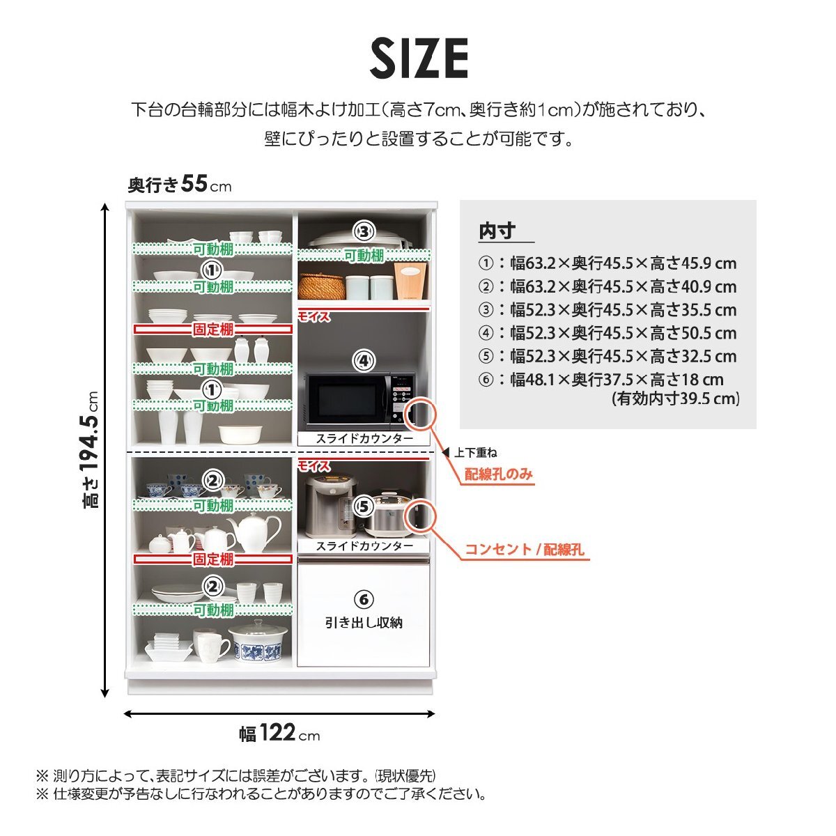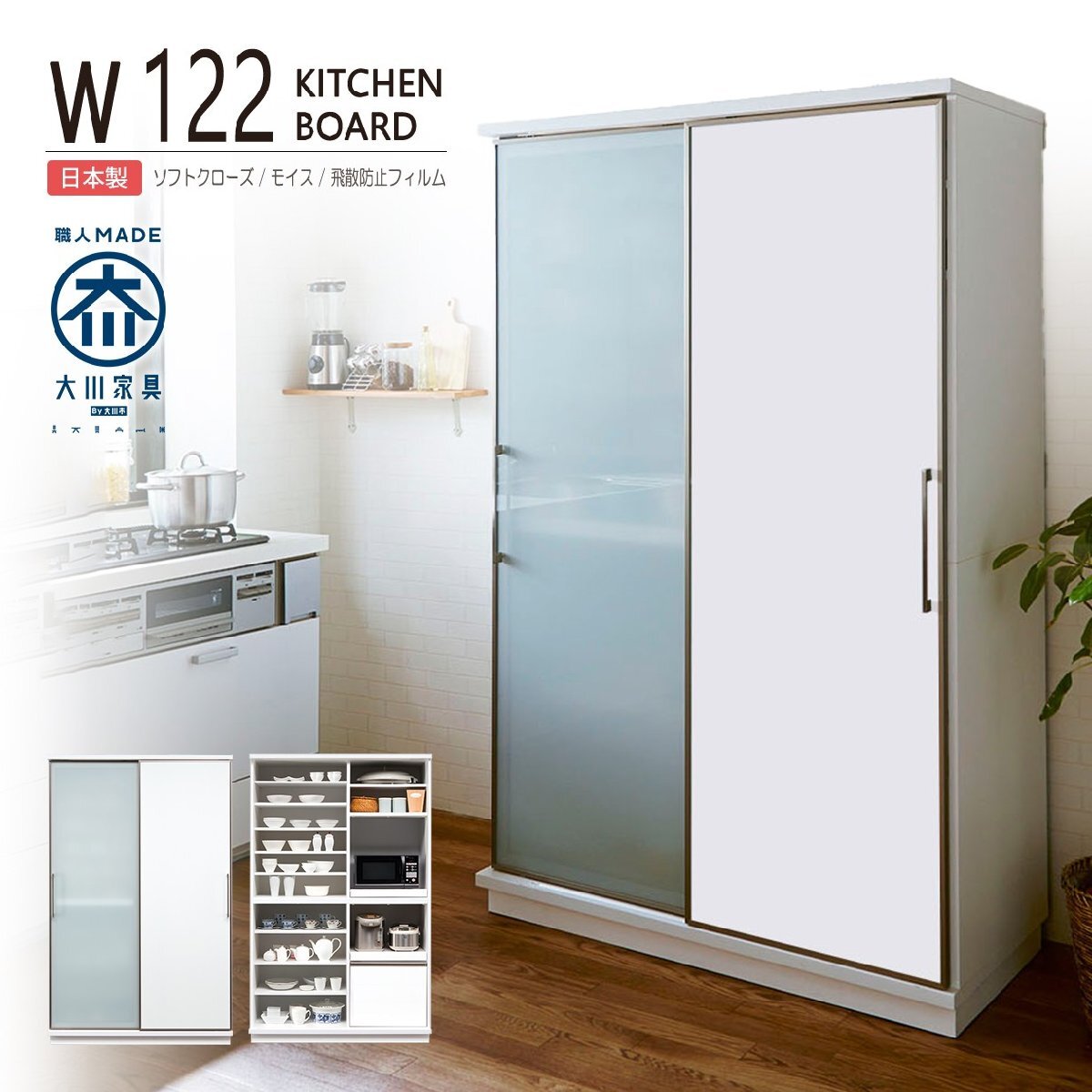 キッチンボード 食器棚 幅122 ハイタイプ 引き戸 スライド ガラス 板戸 ホワイトボード 大容量 レンジ台 家電