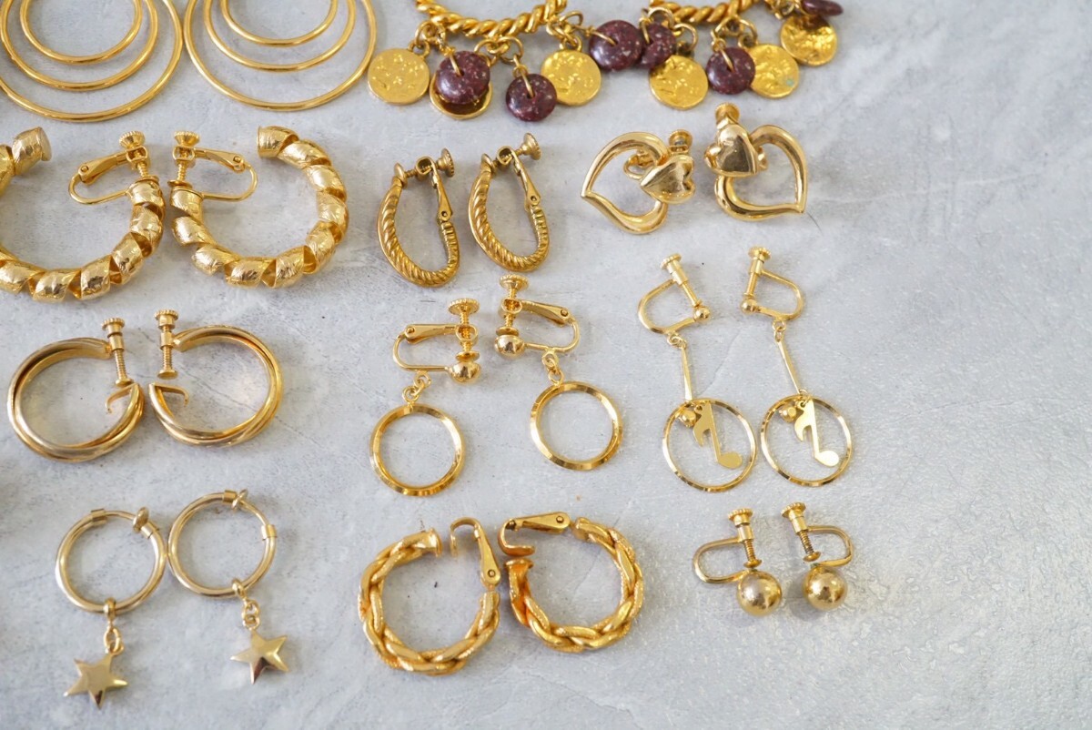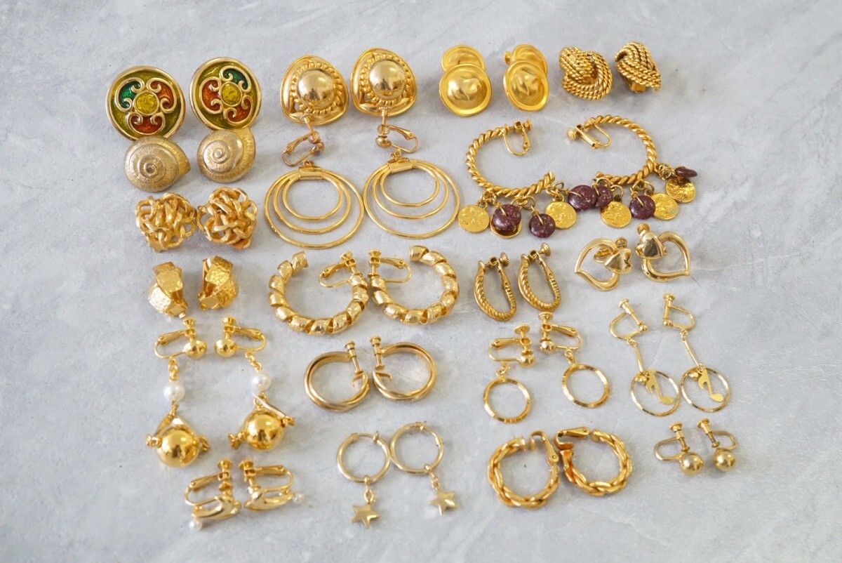 C945 ゴールドカラー 海外製など イヤリング 両耳揃い 20点セット ヴィンテージ アクセサリー 大量 まとめて おまとめ まとめ売り 装飾品