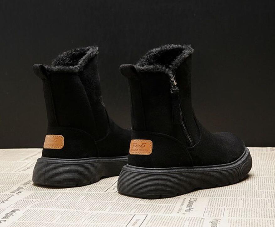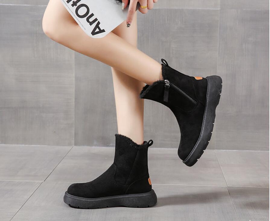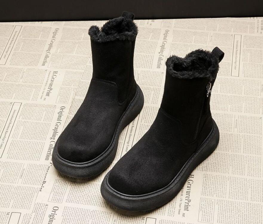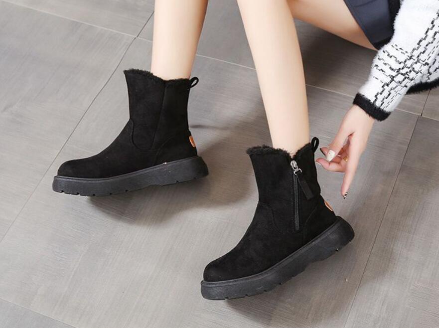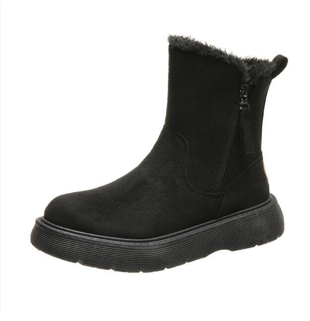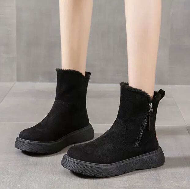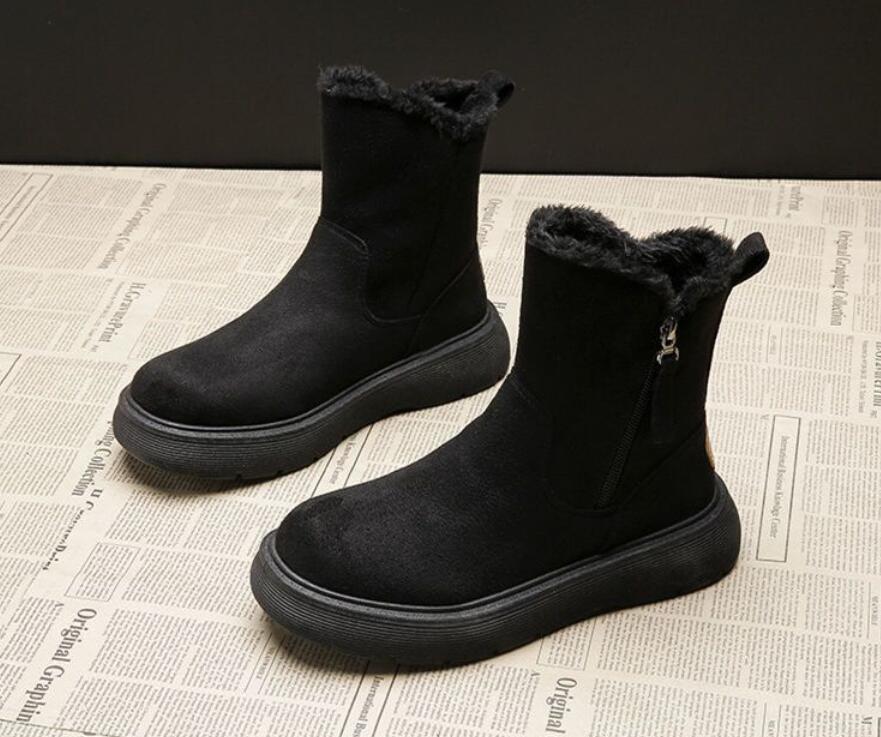 人気品レディース ムートンブーツ レディースブーツ ミドル丈ブーツ スエード ジップブーツ 冬靴 ブラック 25cm