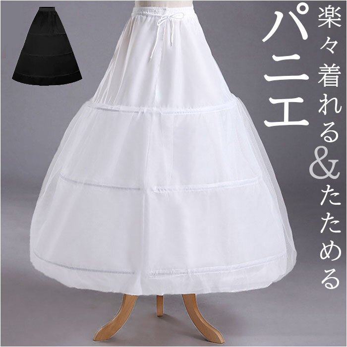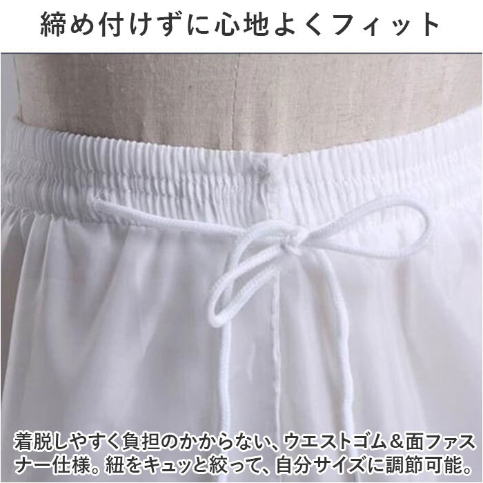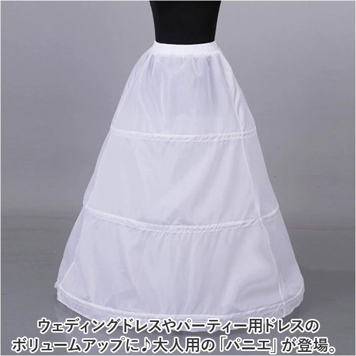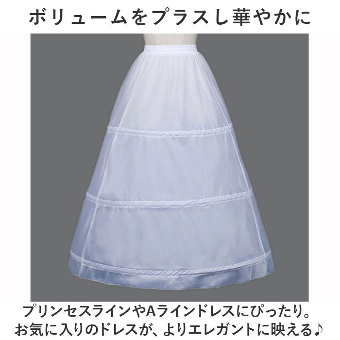 | 商品説明 | ・・ウェディングドレスやパーティー用ドレスのボリュームアップに♪大人用の「パニエ」が登場。 ・【ふんわりシルエットをキープ】 ・サラッとした生地に3段ワイヤーを内蔵し、立体感が生まれるパニエ。美しいフォルムをキープし、足の動きも軽やかに。 ・【締め付けずに心地よくフィット】 ・着脱しやすく負担のかからない、ウエストゴム&面ファスナー仕様。紐をキュッと絞って、自分サイズに調節可能。 ・【折りたたんで持ち運びもスマート】 ・くるっとひねってひとまとめ。スリムな状態で持ち運べるのが嬉しい! ・【ボリュームをプラスし華やかに】 ・プリンセスラインやAラインドレスにぴったり。お気に入りのドレスが、よりエレガントに映える♪ |
