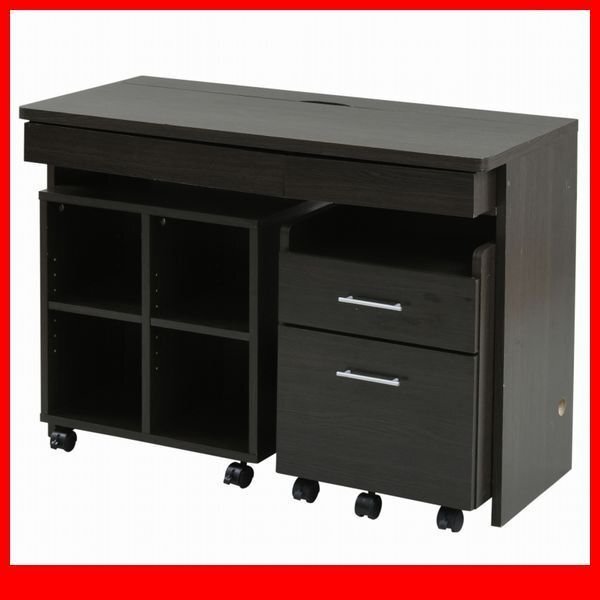 シンプルなデスクにチェストとラックが付いた3点セットアイテム。 デスクの足元には配線が収納できるスペースがあり、パソコンなどの充電コードが邪魔になりません。 幅100cm、奥行45cmのコンパクトなデザインは、 書斎でもリビングでも置き場所に困らずご使用いただけます。 |