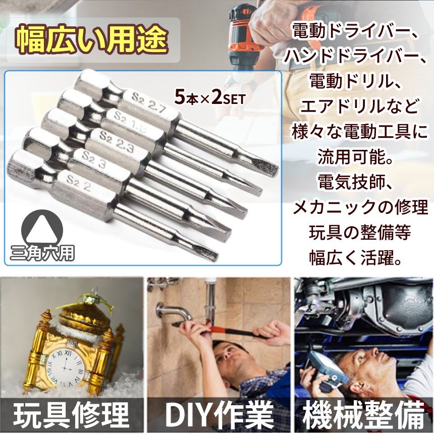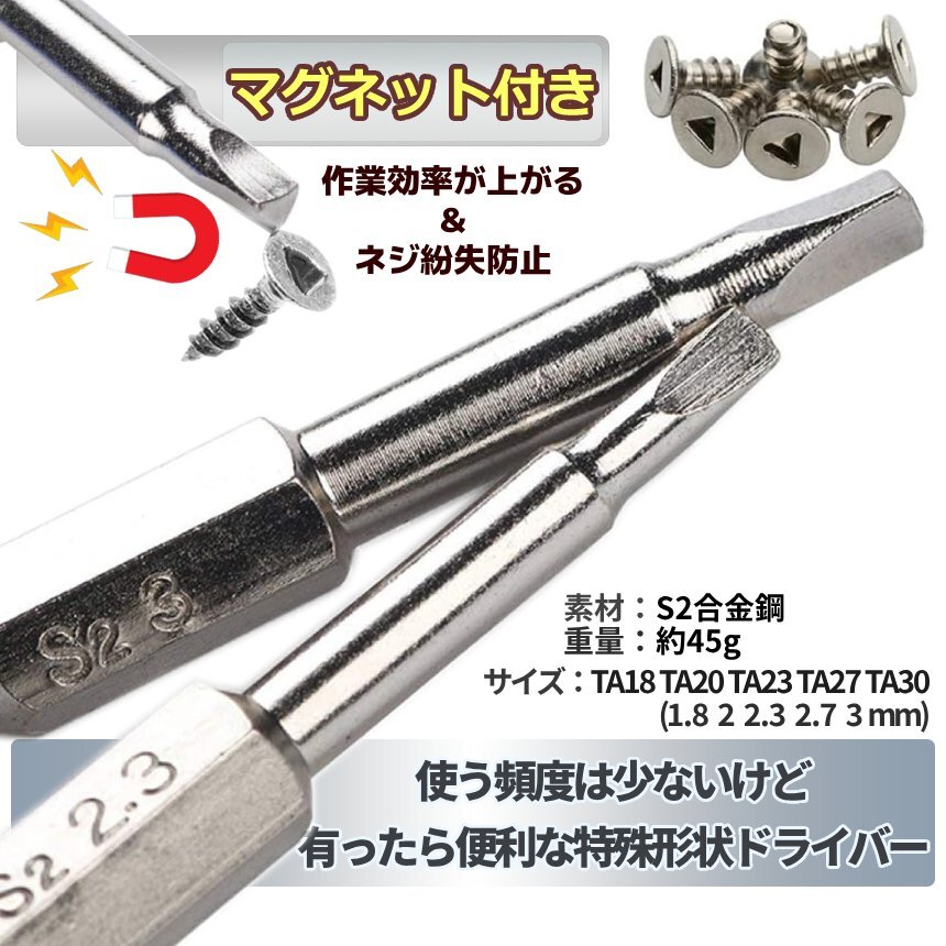| 送料無料!!! 送料及び下記のご案内をご確認の上、ご入札お願い致します。 離島地域を除く九州、四国、本州まで送料無料。 ※北海道は+1000円、離島地域及び沖縄県は+3000円にて承ります。(発送前に加算) ※画像内にカラー及びサイズ等の選択が可能と記載がある場合がございますが、 お届けする物はタイトルまたは商品説明文に記載の物です。 ★※注文後のカラー変更や異なるカラー・サイズ指定等は一切承っておりません。 ※★※仕様(ロゴデザイン/ロゴ有無等も含む)は予告なく変更する場合があります。 ※多少の汚れや小傷がある場合がございますがご了承ください。 梱包は簡易包装ですので、箱の角落ち等はご了承願います。 【商品説明】 [5本×2組 デルタ形状ビットセット] 先端形状が三角形のBITセット プロフェッショナル工具。 汎用性の高いサイズをご用意! コンセント関係の修理や玩具修繕時に 6.35mm六角軸ですので 手動工具はもちろん、電動ドライバーでも使用可能です。 ======= 【商品仕様】 内容:デルタ型先端 ドライバー5本×2組 全長:50mm 材料:S2 合金鋼 軸径:6.35mm六角軸 (1/4インチ) ネジ頭タイプ:デルタビット サイズ:TA18 TA20 TA23 TA27 TA30(1.8、2、2.3、2.7、3 mm) ※日本語説明書は付属しておりません。 ※モニターにより色合いが若干前後する場合がございます。 ※輸入品ですので多少の臭いやスレ傷、汚れはご了承ください。 ※サイズは実寸ですが若干前後する場合がございます。 ======= ※詳細は画像にてご確認ください ![]() ![]() ![]() ![]() ![]() ![]() |