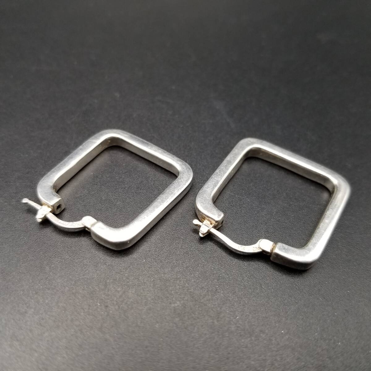 Milor イタリア ヴィンテージ スクエア フォルム シンプル リング ピアス 銀 スタイリッシュ 上品な存在感 R16-Y