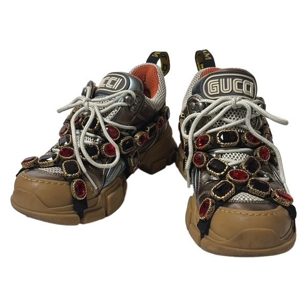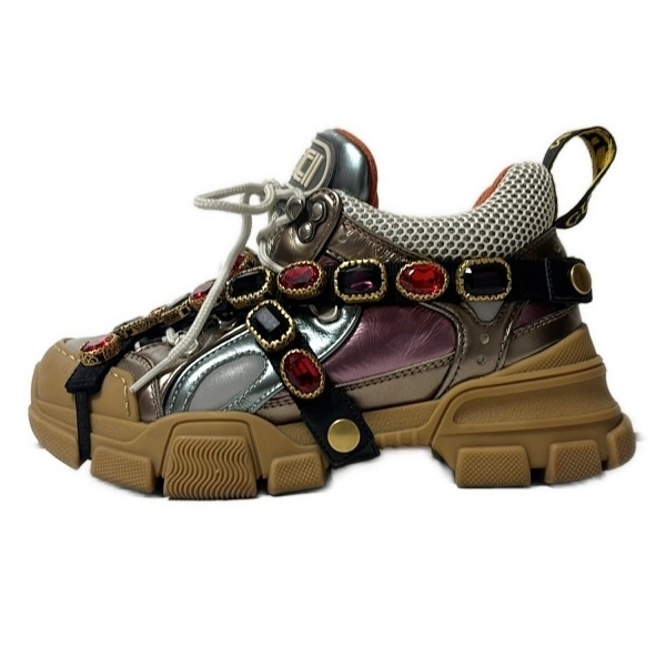 グッチ GUCCI スニーカー - レザー パープル×白×マルチ レディース インソール取外し可/ビジュー 靴