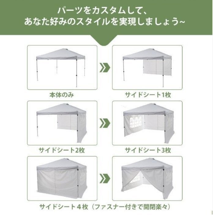 • 【パーツをカスタムして、あなた好みのスタイルを実現しましょう~】本体のみ サイドシート1/2/3枚 サイドシート4枚(ファスナー付きで開閉楽々)