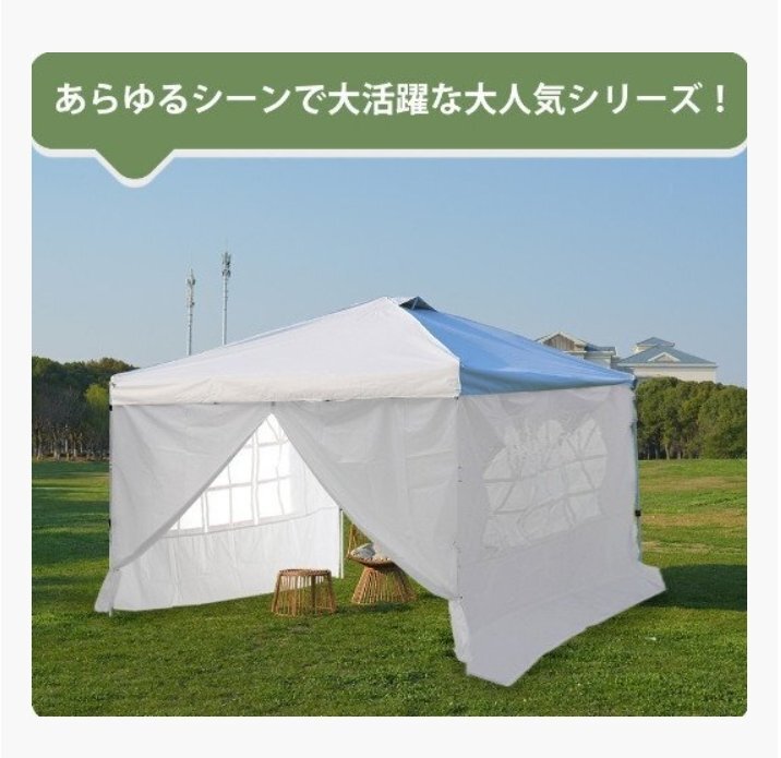 【ホワイト】タープテント 3m サイドシート4枚付 UV加工 撥水 ワンタッチタープテント 簡単 大型