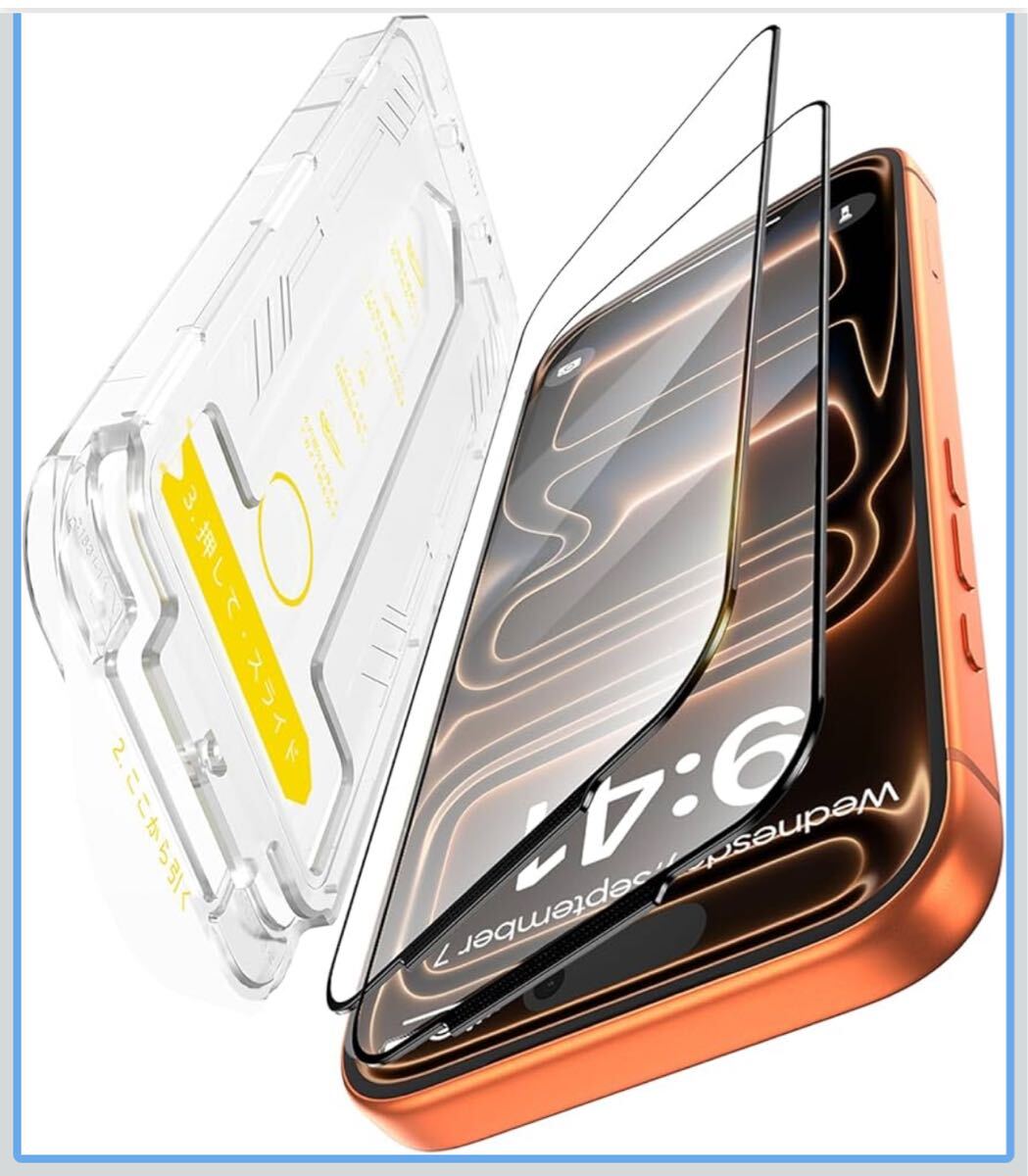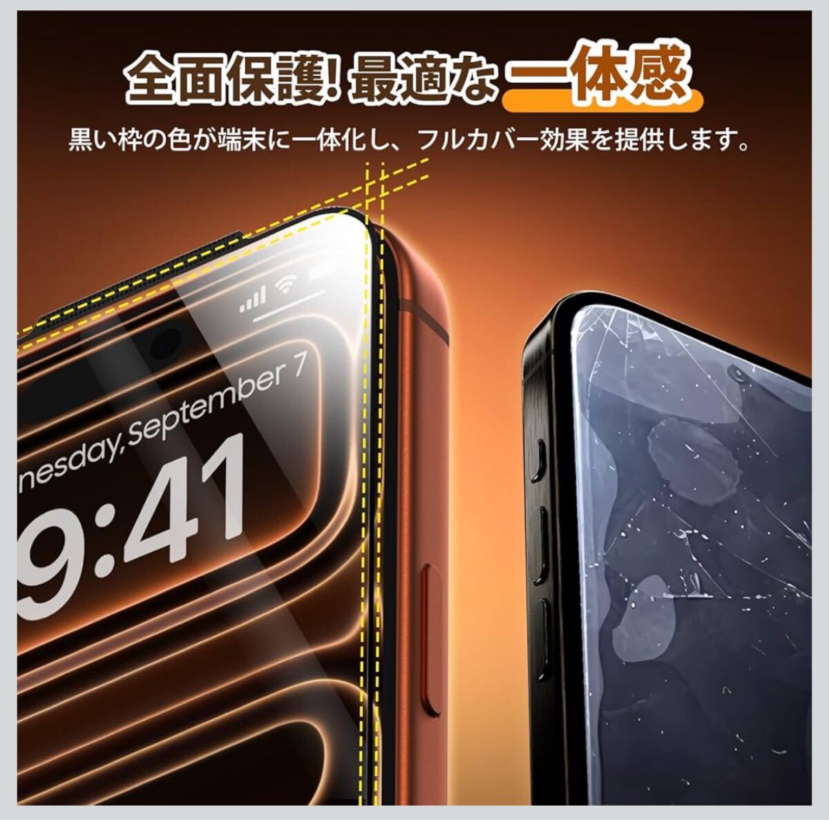 ガラスフィルム iPhone 17 Pro 用 【MIL規格極細黒縁・革新的なガイド枠】 保護フィルム 2枚セット 旭硝子素材製 強化ガラス 液晶保護 9H硬度 耐衝撃 ブルーライトカット 無色ARコーティング 目に優しい指紋防止 飛散防止 スクラッチ防止 超鮮明な画質 気泡防止 高感度タッチ アイフォン 17プロ 対応