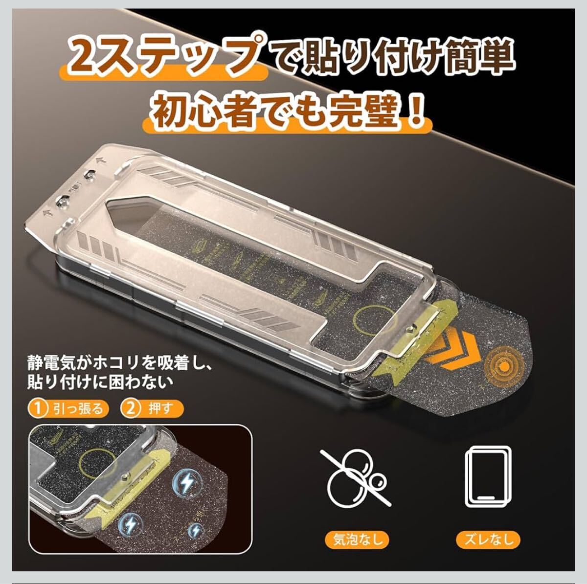 【初心者でも完璧!引っ張るだけで貼り付け完了】2ステップで、初心者でも完璧に貼り付け可能!画面に置くだけでキレイに貼れ、気泡も抜けやすい。CNC彫刻加工を採用したガイド枠は 17 Proの画面にぴったりフィットし、ズレなどのストレスから解放!
