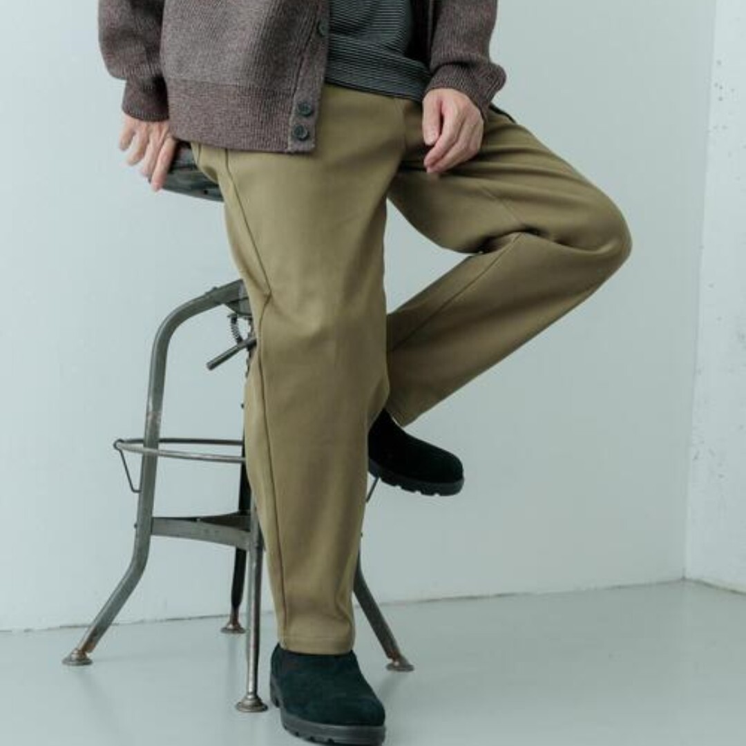 シルエットは、程よくすっきりとしたテーパードデザインで、スタイリングの馴染みが良く、合わせるアイテムを選ばず着用いただけます。