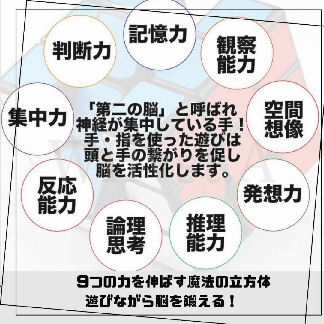 遊びながら脳をトレーニングする教育玩具として、記憶力や集中力、忍耐力、論理的思考力、空間認識力を育む効果が期待できます。また、高齢者の認知症防止やリハビリ、仕事の合間のストレス解消にも役立ちます。手軽に楽しめるこのルービックキューブで、心と頭をリフレッシュしてみませんか?