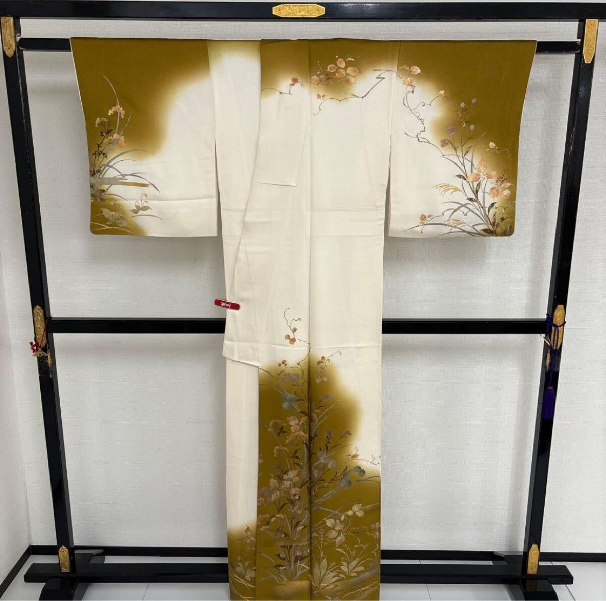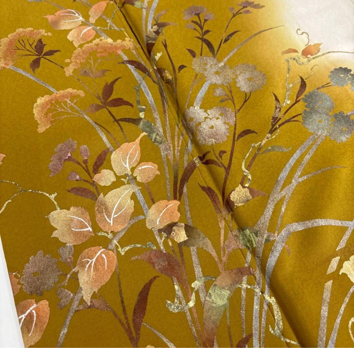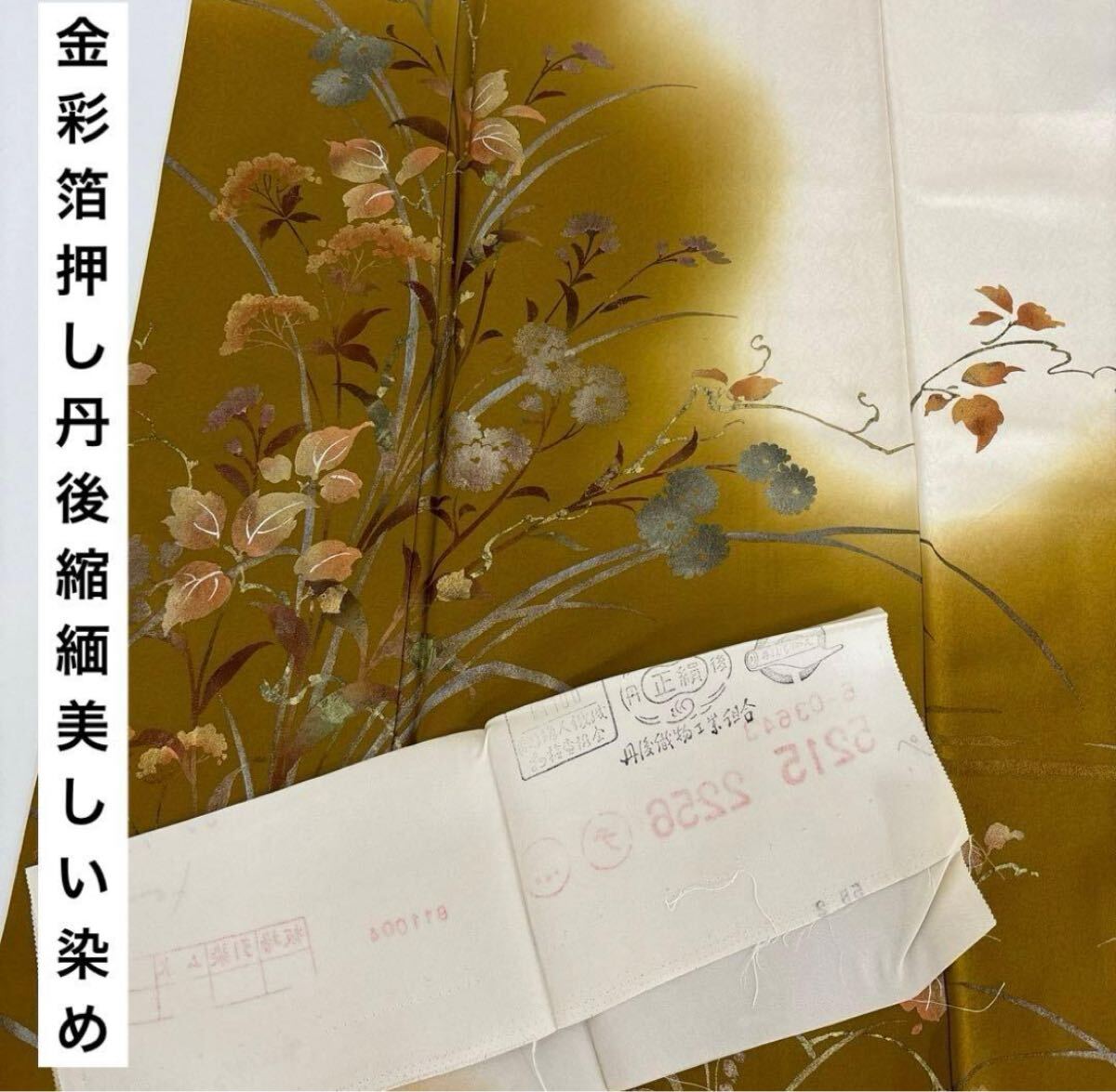 【楓】金彩 箔押し 丹後縮緬 美しい染め 紋無し 付下げ 訪問着 正絹 KU-2600