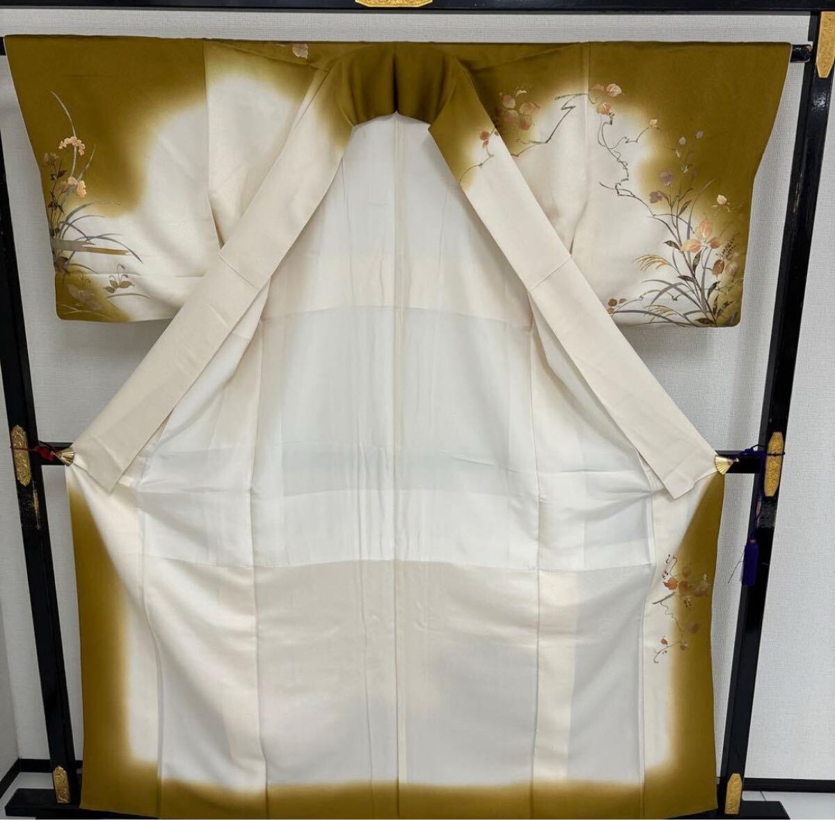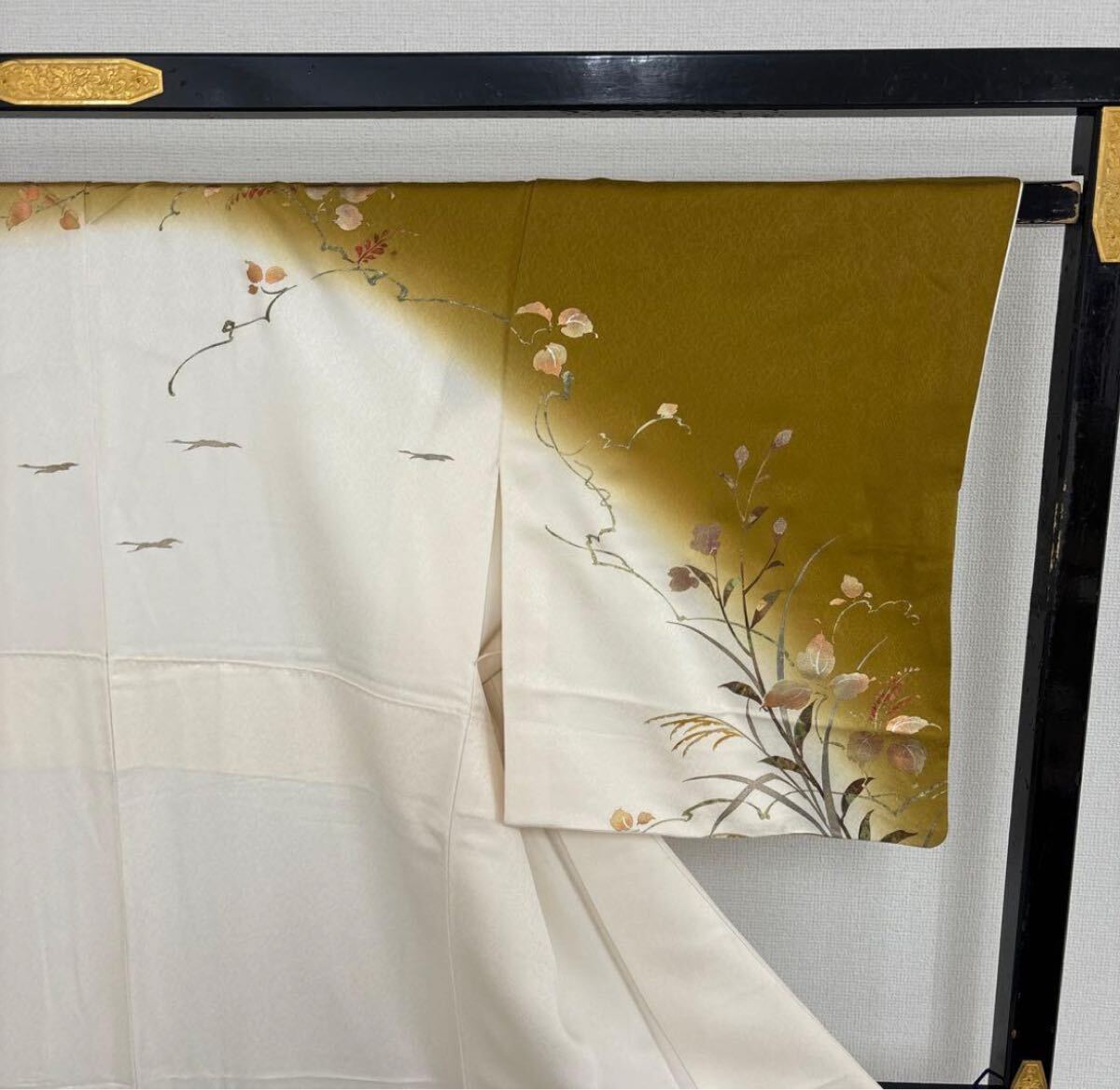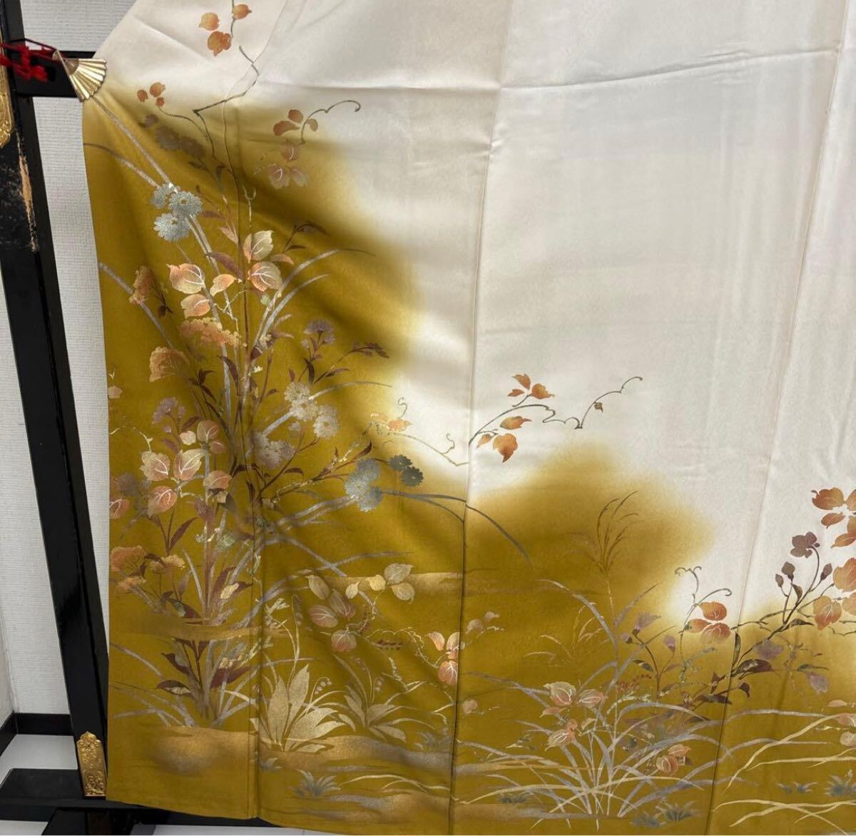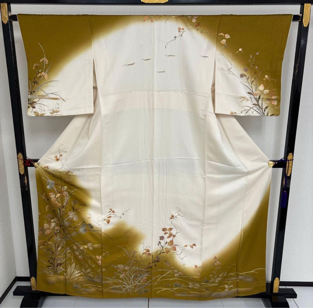 【楓】金彩 箔押し 丹後縮緬 美しい染め 紋無し 付下げ 訪問着 正絹 KU-2600