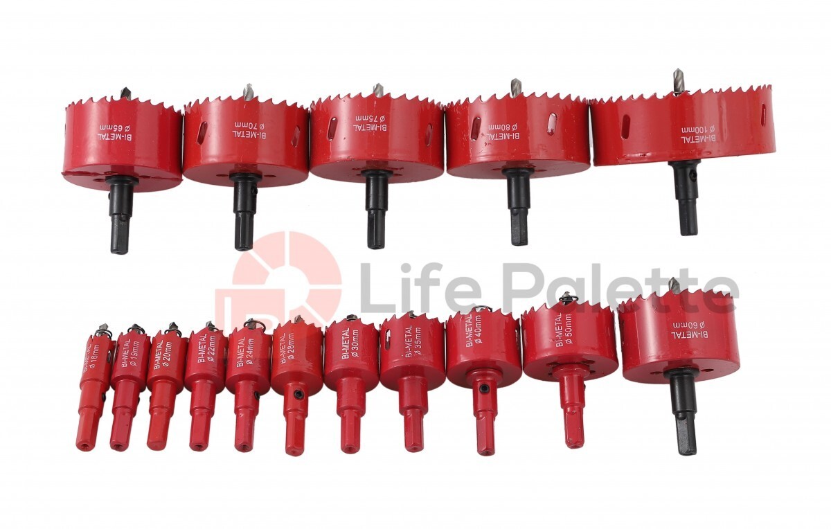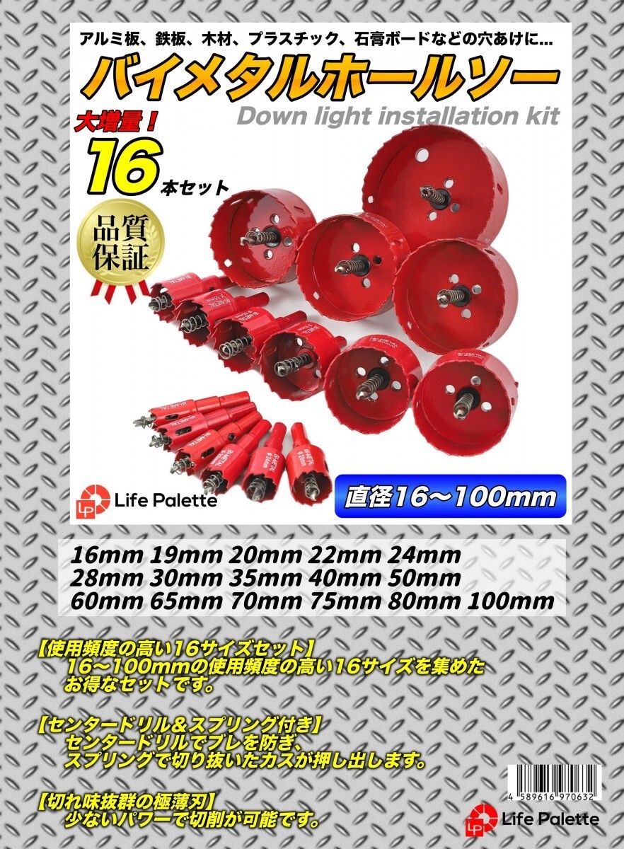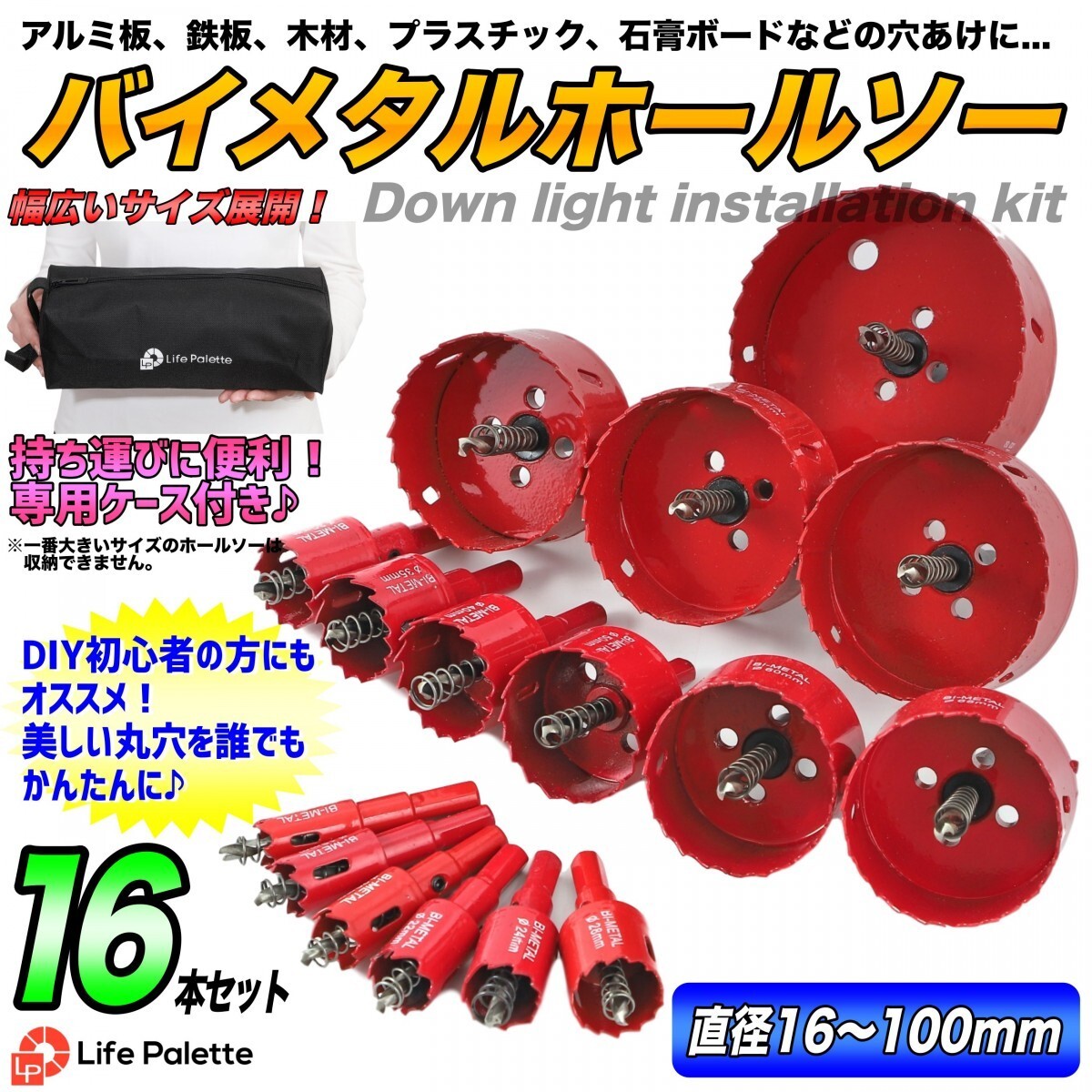 工具ケース付き 16点セット バイメタルホールソー 直径16~100mm 超硬ホルソー 木工 工具ドリルビット 鉄工キリ 穴あけ ライフパレット | |||