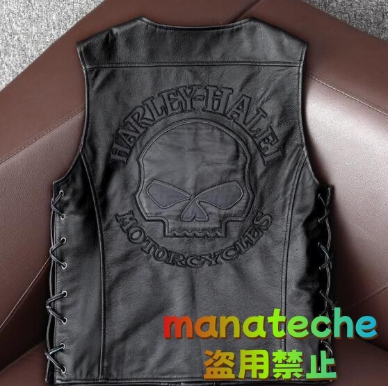 人気レザーベスト 反射材 服メンズ ライダース カウベスト 本革 夜間反射効果 牛革 メンズファッション スカル柄 革ジャン S~4XL