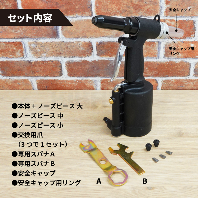 ※この商品は必ずエアーコンプレッサーが必要となります ※リベットは付属しません ※パッケージの外見保証はございません |