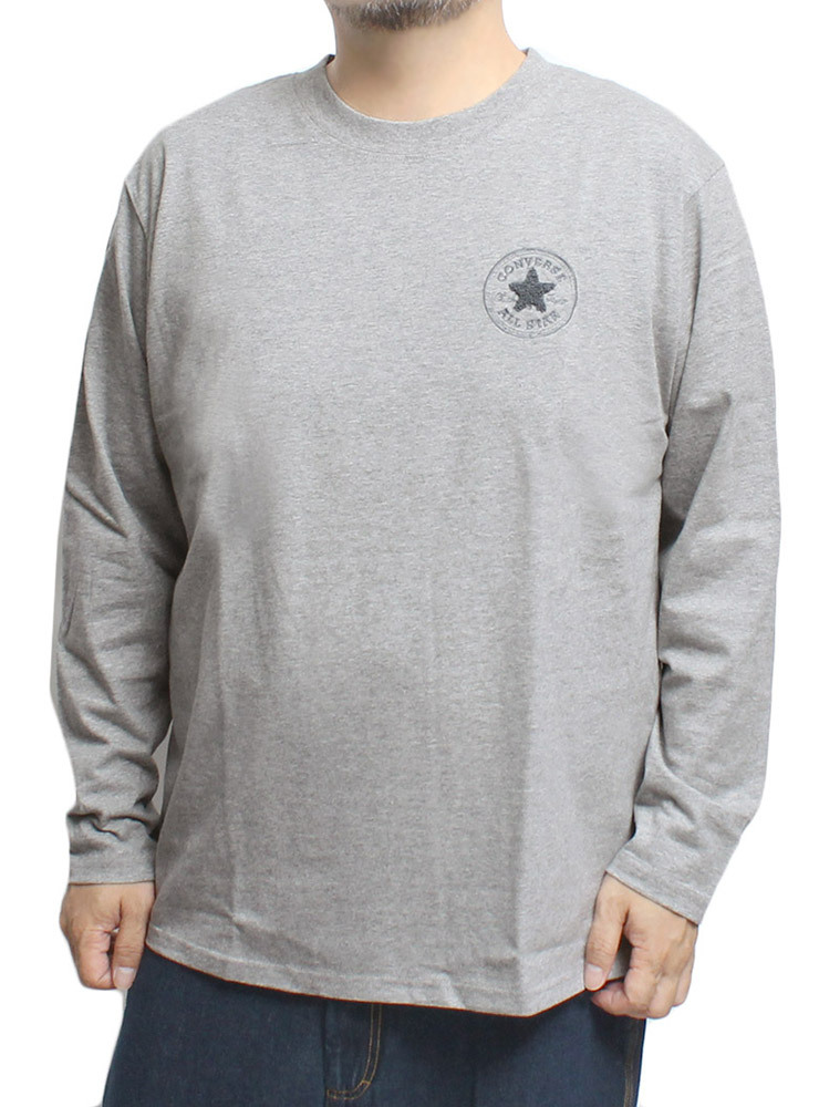 | 商品名 | 【新品】 3L グレー コンバース(CONVERSE) 長袖Tシャツ メンズ 大きいサイズ サガラ刺繍 ロゴ プリント クルーネック カットソー |
