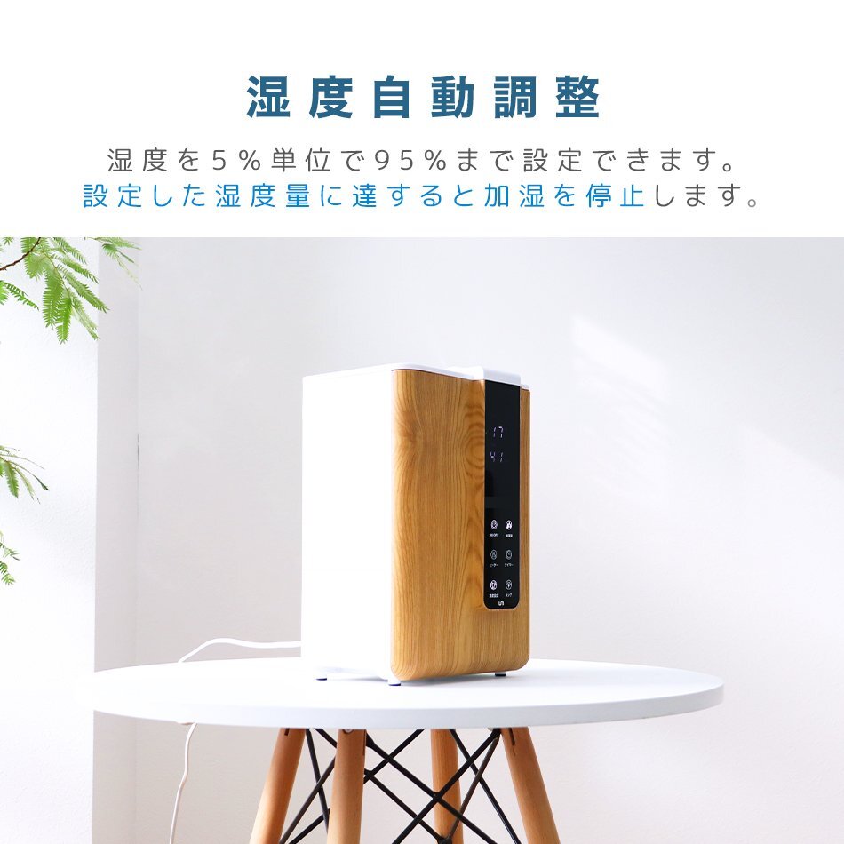 | ハイパワーな加湿力で素早く潤いを届けるハイブリッド加湿器。 ヒーターで加熱した水を超音波の振動できめ細かいミストにしてお部屋を加湿。 熱くないミストは触っても平気なので、お子さまのいるご家庭でも安心です。 カラー:ウォルナット サイズ:(約)幅220×高さ300×奥行160mm 重量:(約)1kg(水の重さ含まず) 加湿方式:超音波式 最大加湿能力:(約)300ml/h(調整可能) 対応面積:(約)10畳 タンク容量:4.8L コード長:(約)1200mm 電源:AC110V 50/60Hz 消費電力:25W 素材:ポリプロピレン 他 |