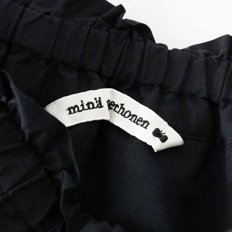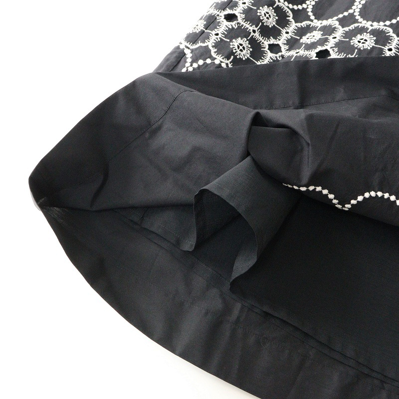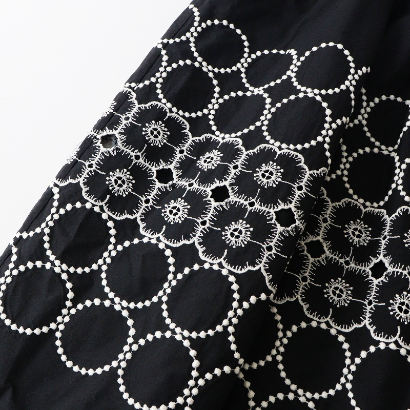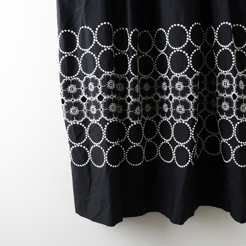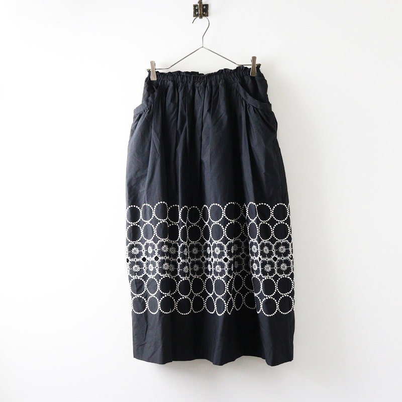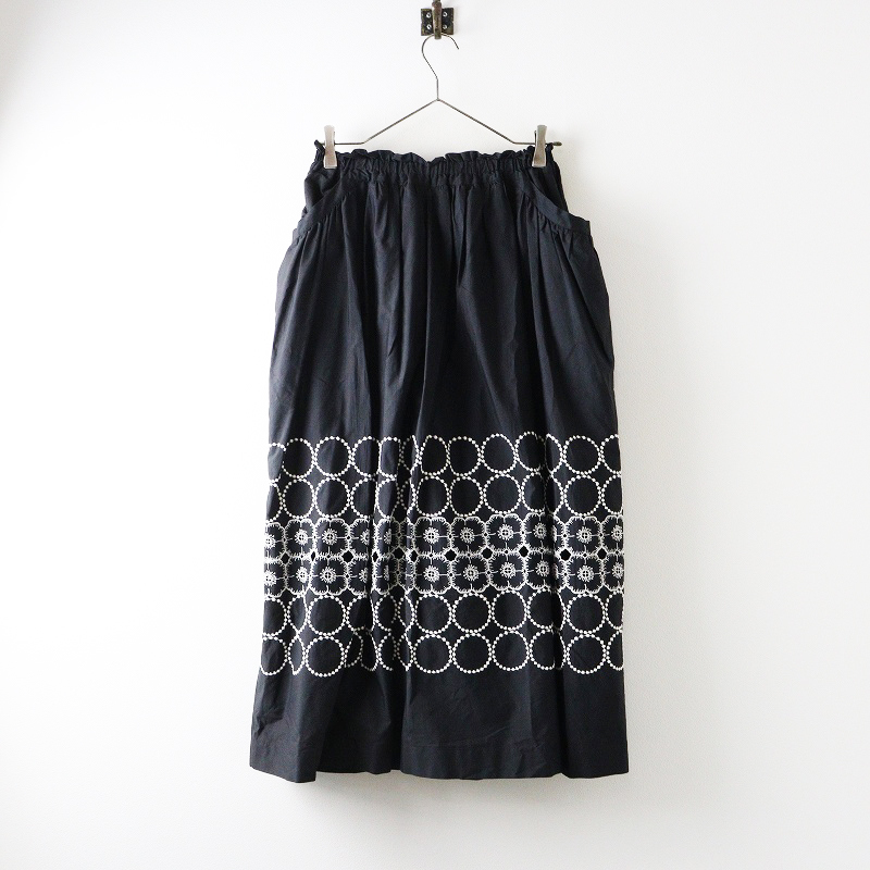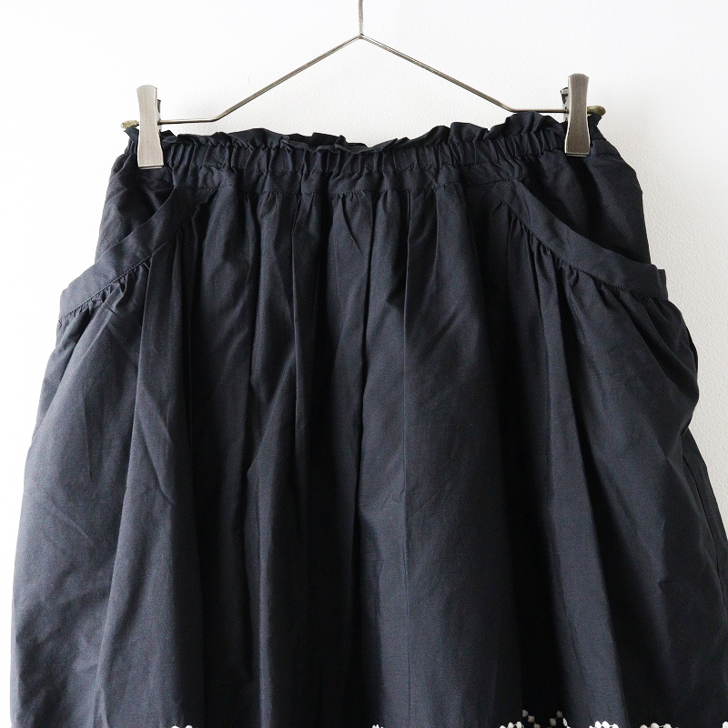 美品 2024SS ミナペルホネン mina perhonen anemone×tambourine コットンシルク 刺繍ギャザーロングスカート 36 黒┃【2400014696868】