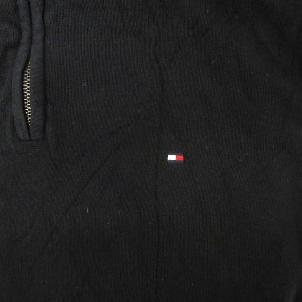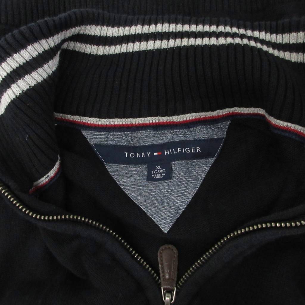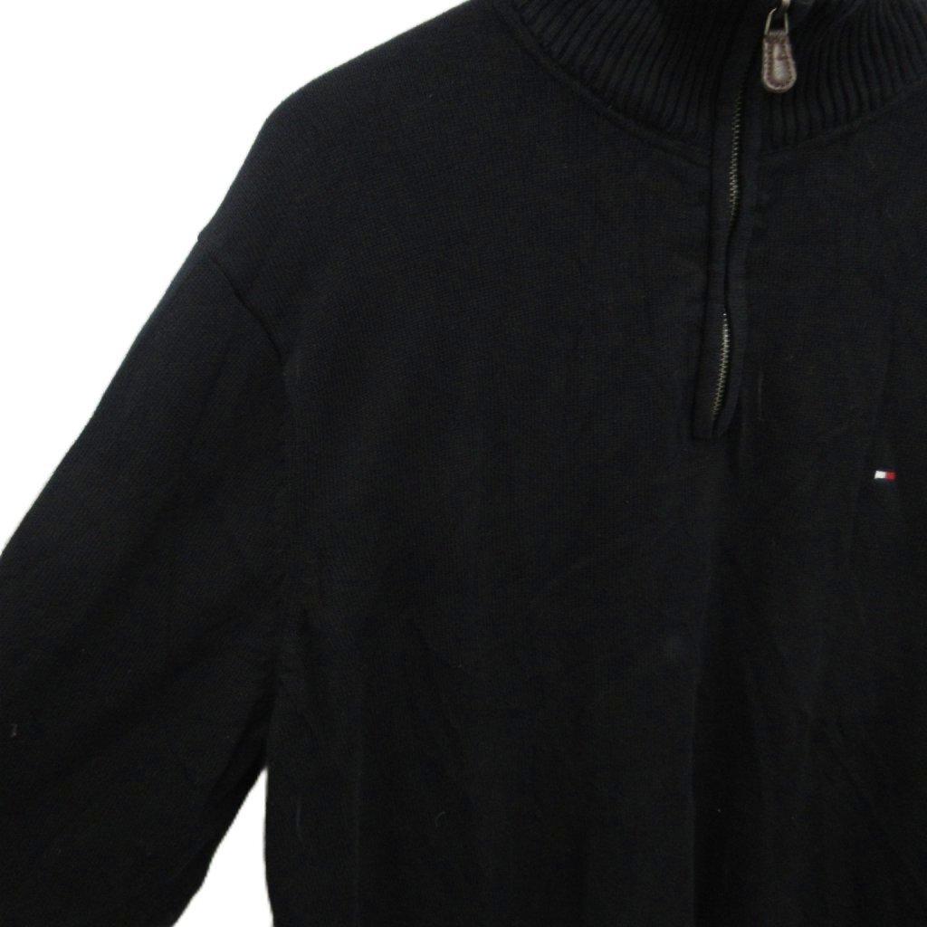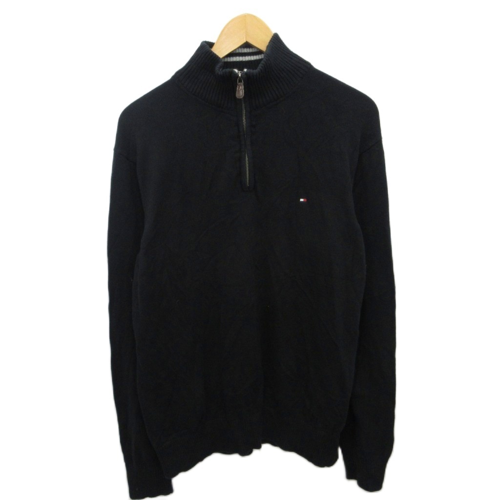 トミーヒルフィガー TOMMY HILFIGER コットンニット セーター ハーフジップ ハイネック ロゴ刺繍 XL 黒 ブラック ■MET2 メンズ