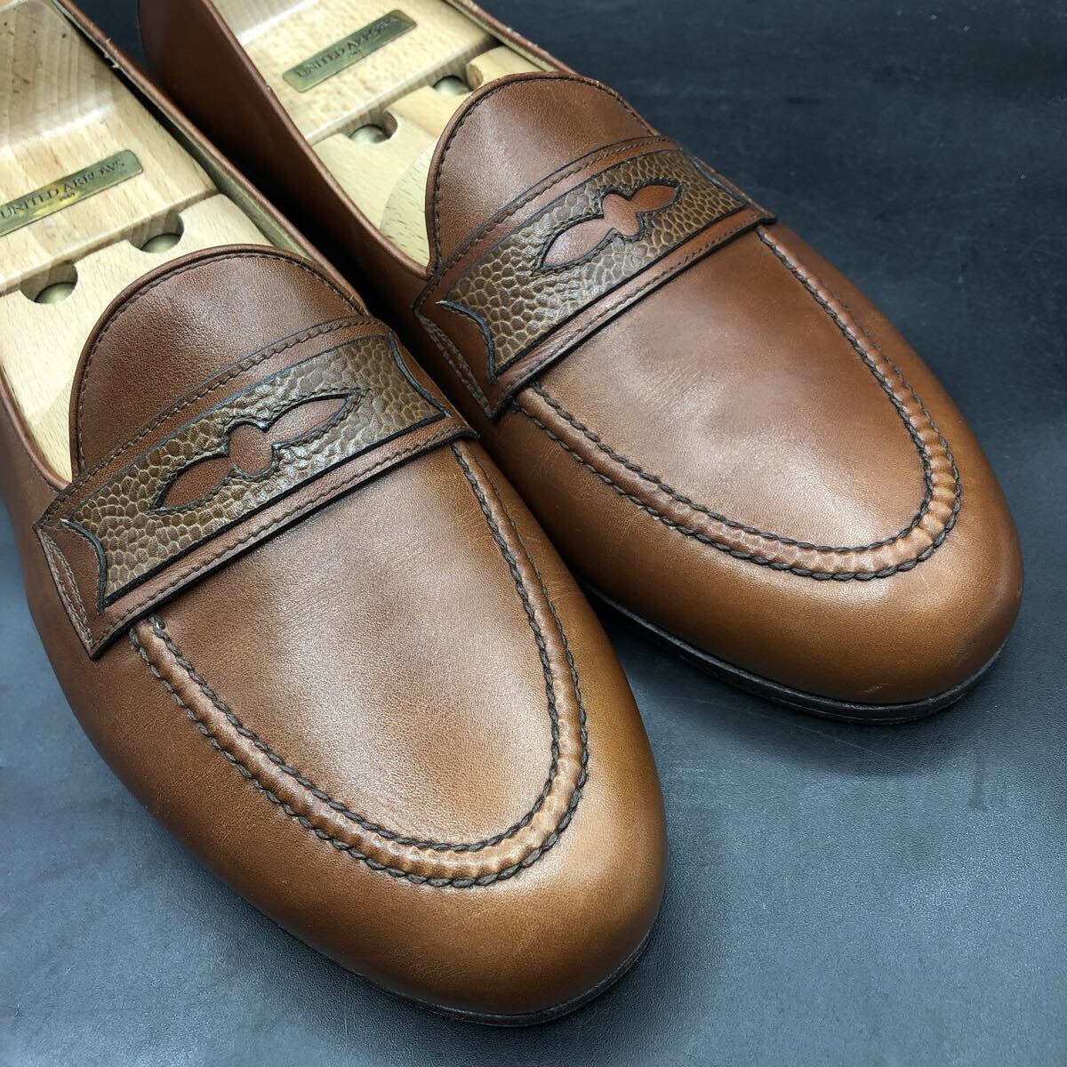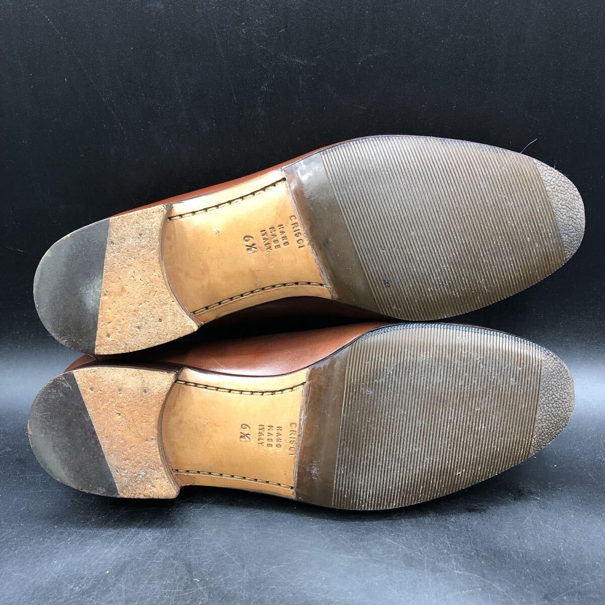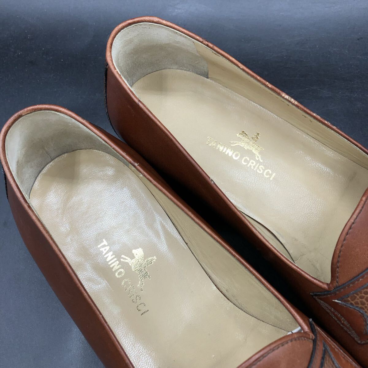 11M4862 ほぼ美品 TANINO CRISCI タニノクリスチー レザー コインローファー スリッポン メンズ 6.5/25.0cm相当 ブラウン 型押し