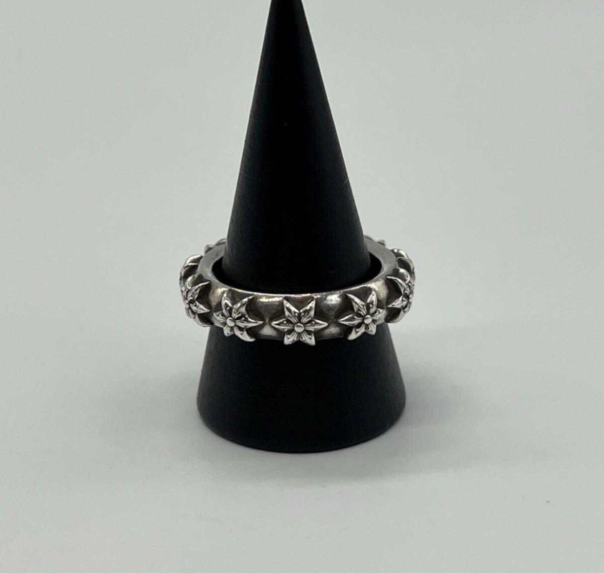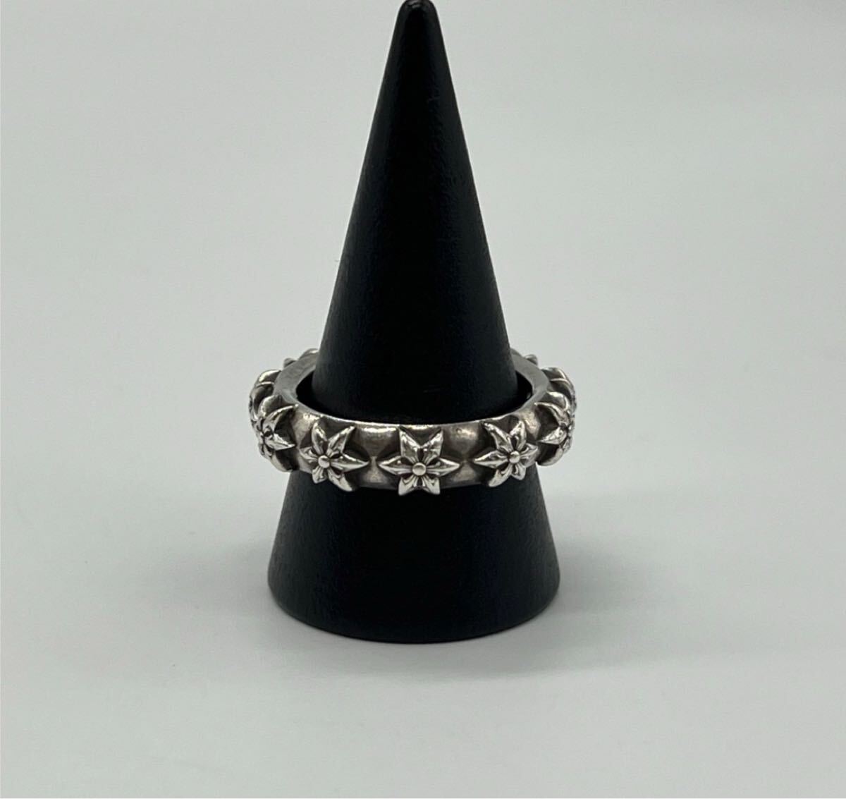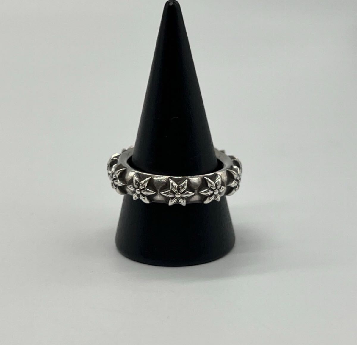 クロムハーツでは珍しい星をモチーフにデザインしており、全面にデザインされた星のデザインはクロスのデザインに比べハードな印象を与えにくく初めてクロムハーツを購入する方でも着用しやすいデザインでございます。