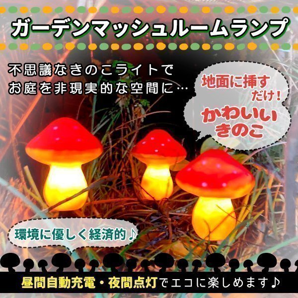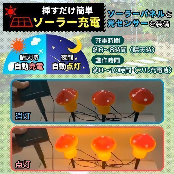 きのこライト ソーラーライト ストリングライト LED花園灯 3個きのこランプ 地中埋込型ライト ガーデンライト 屋外ライト