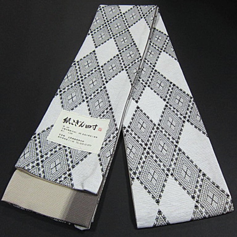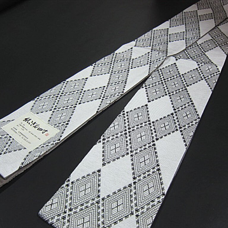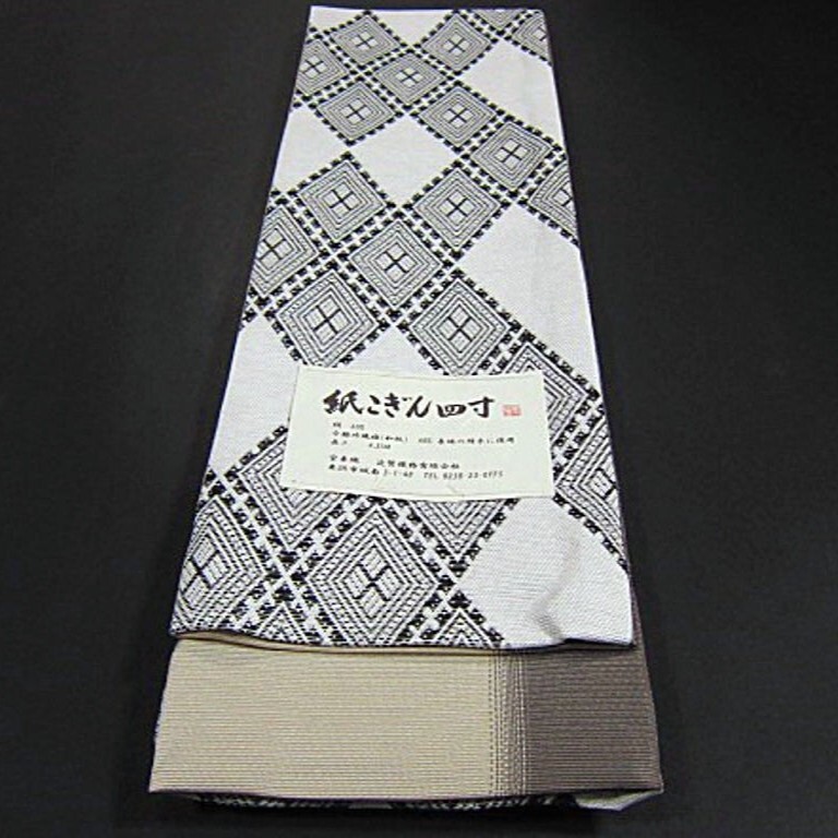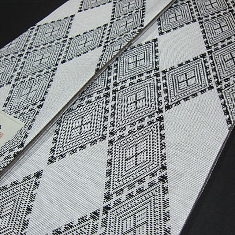 新品 米沢織 絹 和紙 宝来屋 紙こぎん四寸帯 高級半幅帯  幅広 長尺 老舗・近賢織物 菱模様①