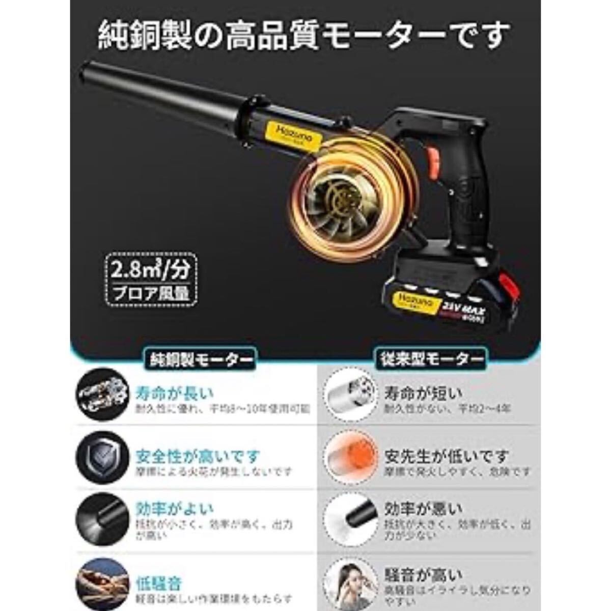 【パワフルな性能】高品質な純銅製モーターを採用し、最高のターボファン技術により。ブロア風量:2.8/分、回転速度: 20000 r/min。作業効率の大幅な向上はもちろん、機械の寿命を著しく延ばし。これにより、作業効率が大幅に向上し、機械の寿命も著しく延びます。落ち葉、ほこり、破片など、さまざまな清掃タスクに簡単に対応できます。コスパが高く、驚きの性能を誇ります。