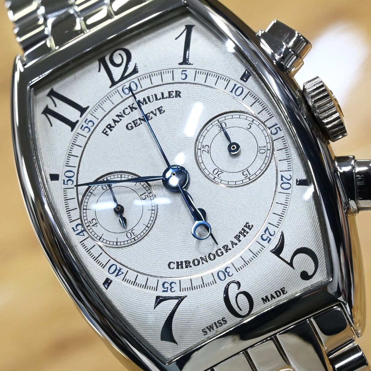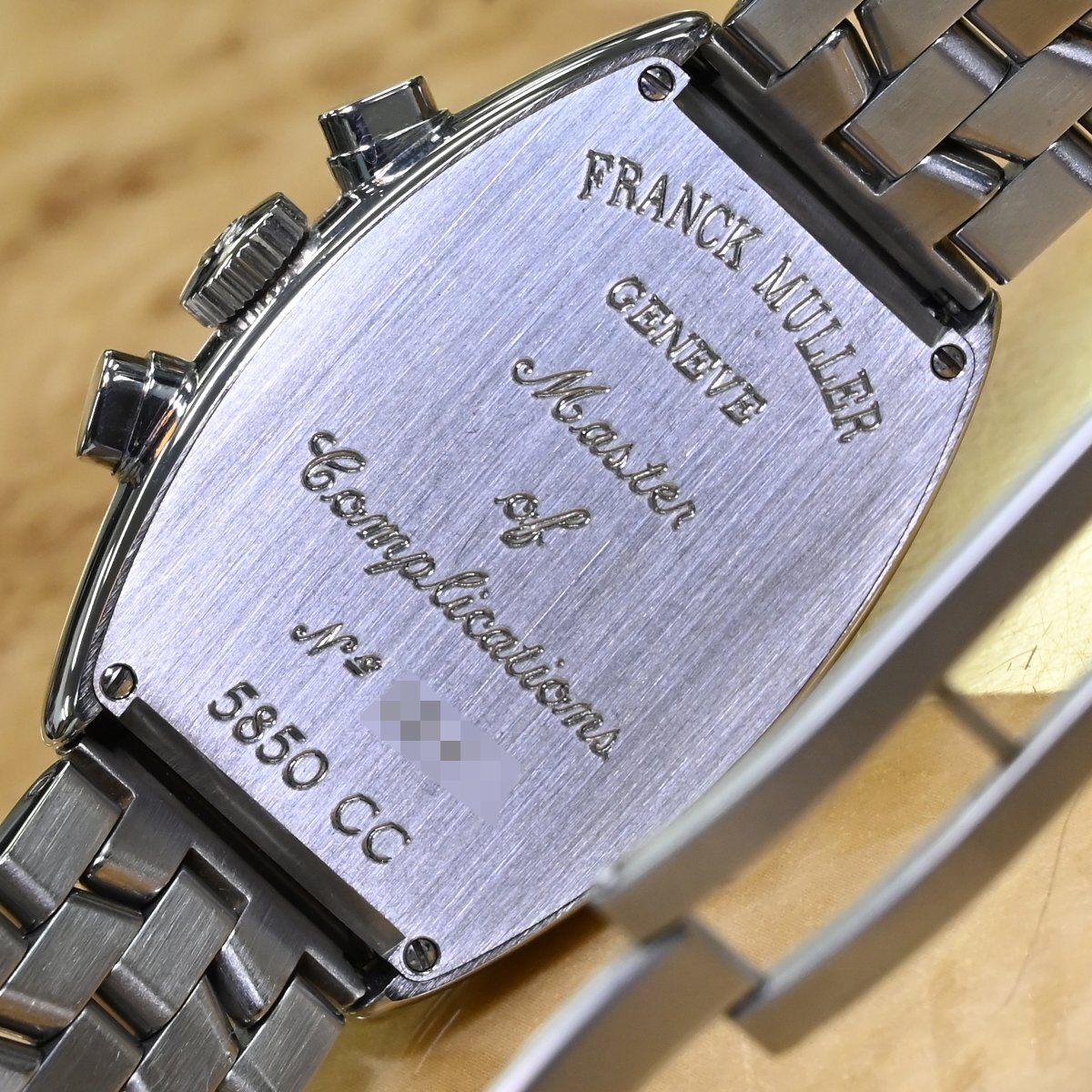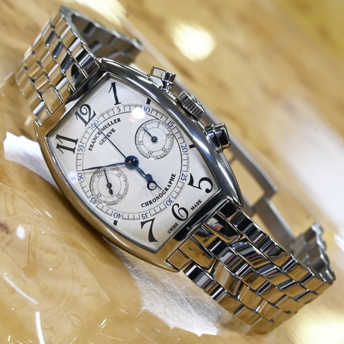フランクミュラーのレマニア搭載 クロノグラフです。 1994年に発表されたトノウ カーベックス クロノグラフ。 このモデルはトノウ型のクロノグラフとして初めてシリーズ化され、実質的なファーストモデルとなります。 LEMANIA(レマニア)社製cal:1872の手巻きクロノグラフムーブメントをベースに、フランク ミュラー社による独自のチューンナップが施されています。 市場にも全く出てこないモデルなのでお探しの方も非常に多いかと思います。 ※基本動作確認済。 |