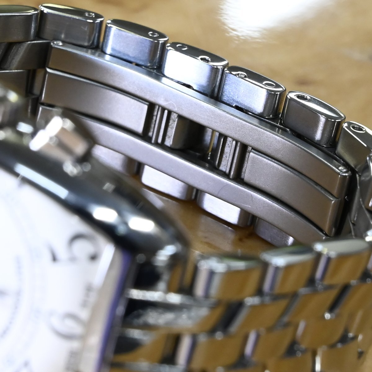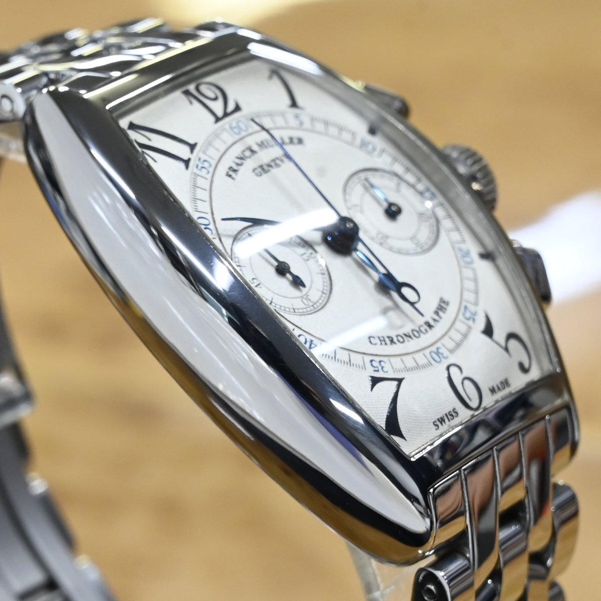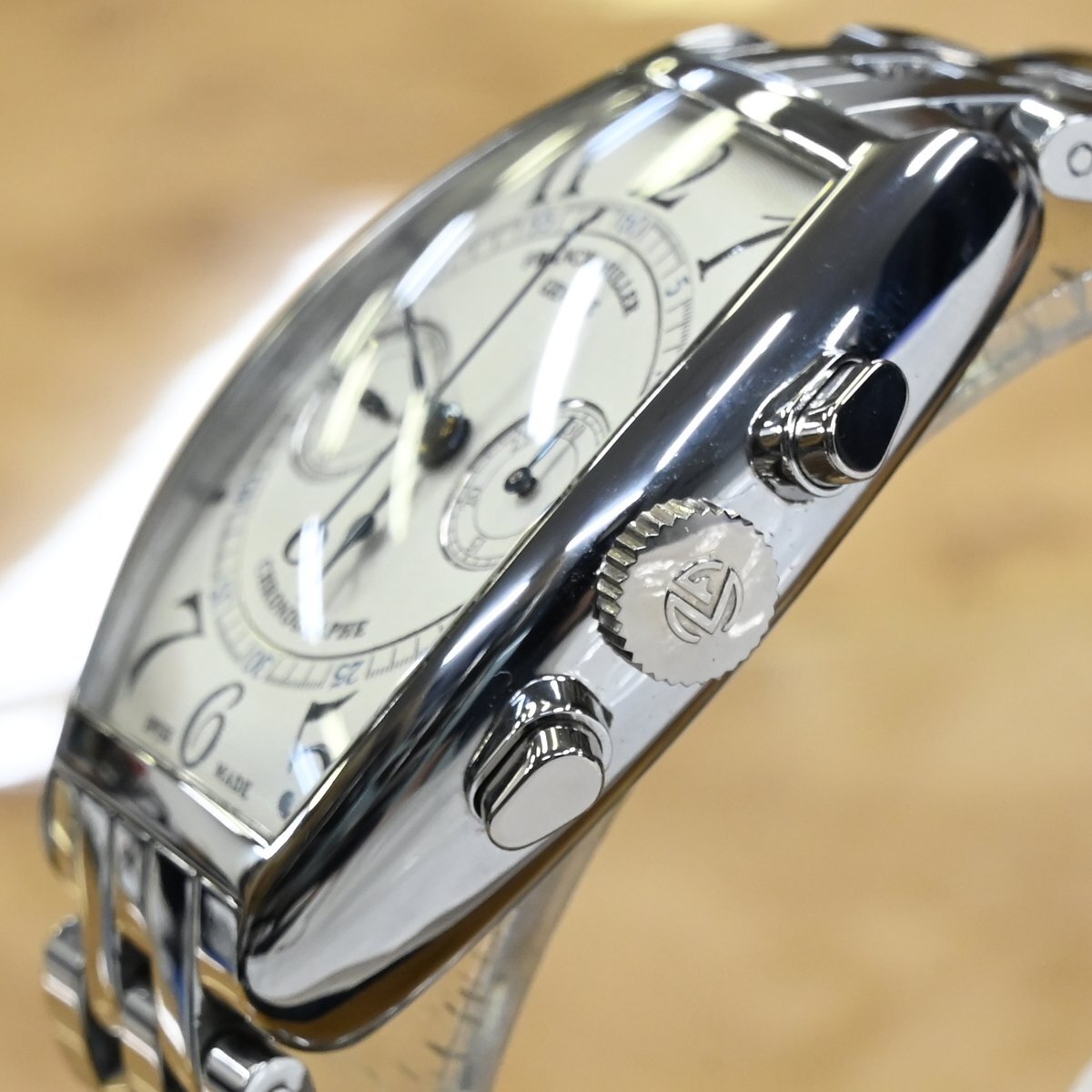 フランクミュラーのレマニア搭載 クロノグラフです。 1994年に発表されたトノウ カーベックス クロノグラフ。 このモデルはトノウ型のクロノグラフとして初めてシリーズ化され、実質的なファーストモデルとなります。 LEMANIA(レマニア)社製cal:1872の手巻きクロノグラフムーブメントをベースに、フランク ミュラー社による独自のチューンナップが施されています。 市場にも全く出てこないモデルなのでお探しの方も非常に多いかと思います。 ※基本動作確認済。 |