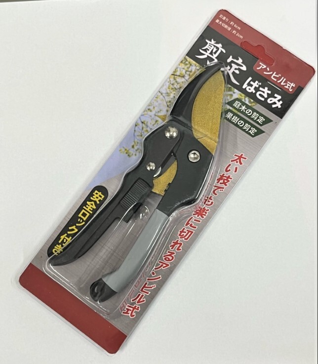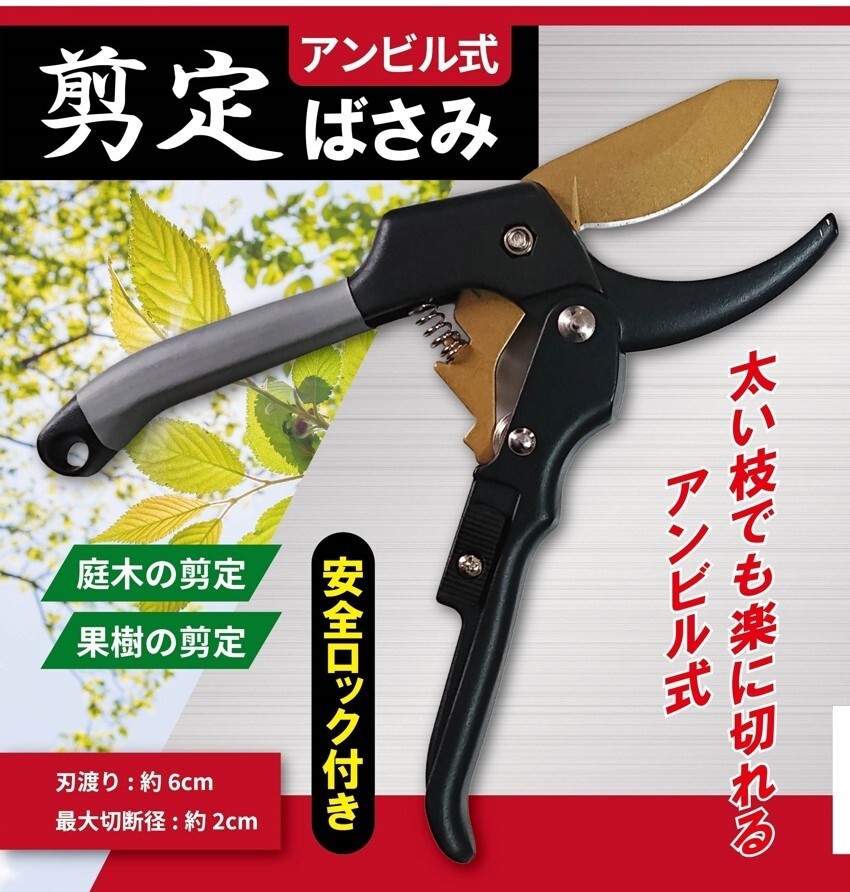 太い枝でも楽に切れるアンビル型の剪定鋏です。