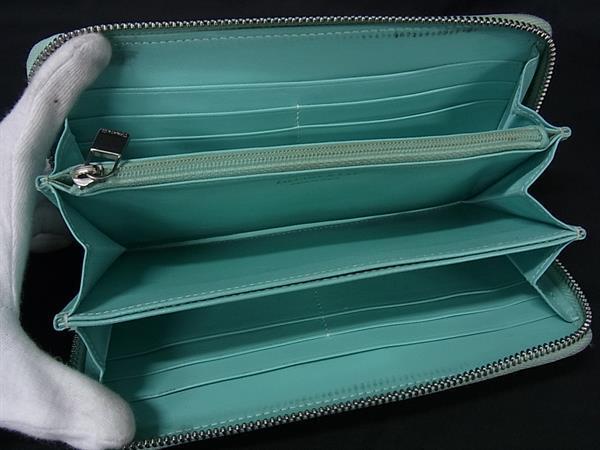 1円 TIFFANY&Co ティファニー レザー ラウンドファスナー 長財布 ウォレット 札入れ 小銭入れ レディース ティファニーブルー BQ2346