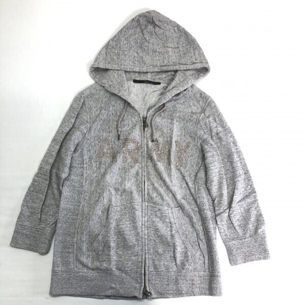 Edition エディション TOMORROWLAND ラインストーン ARMY 霜降り 七分袖スウェット パーカー レディース 日本製 ダブルジップ 38 グレーです。