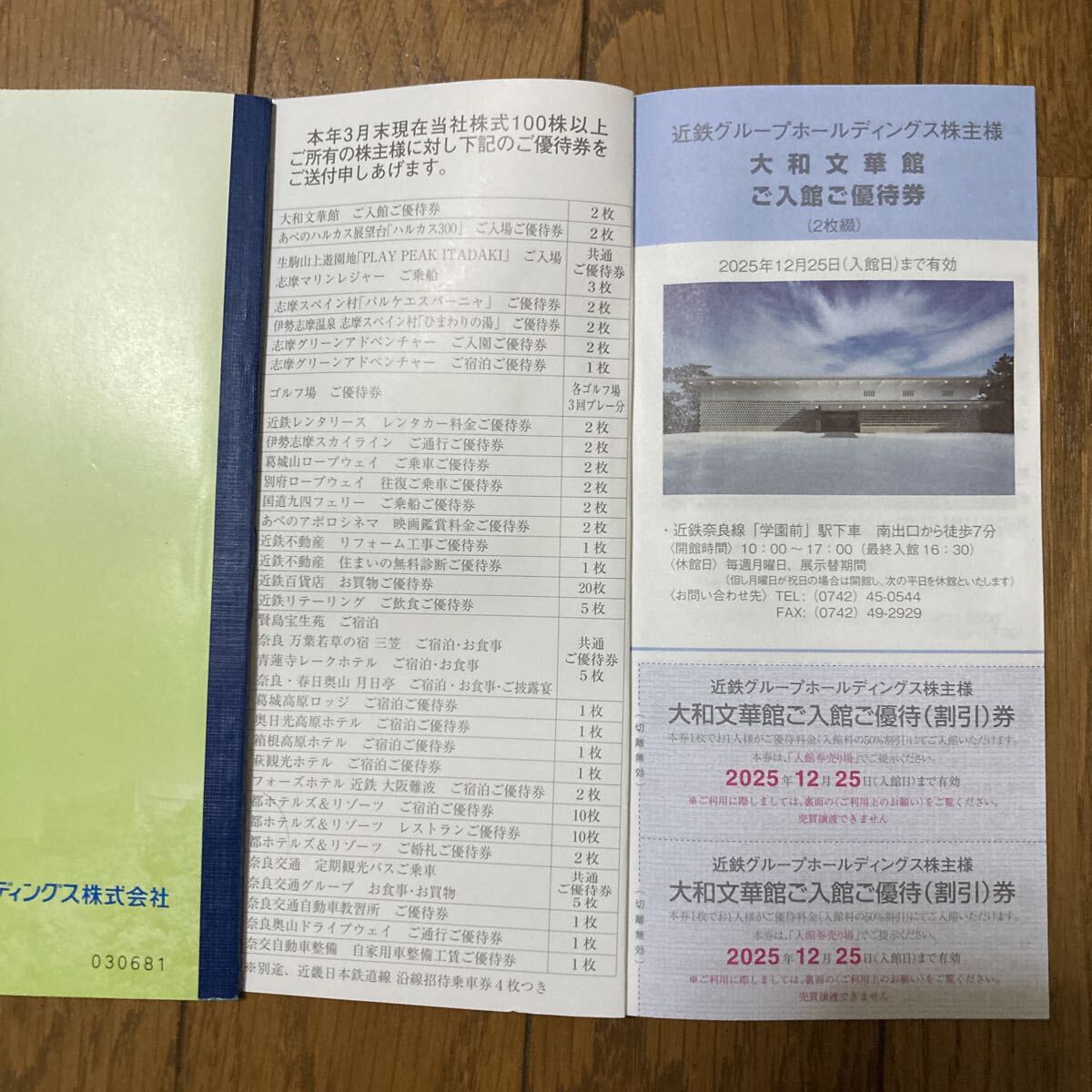 近鉄グループホールディングス株式会社 株主優待券 冊子2冊(4名分) 2025年12月31日まで有効