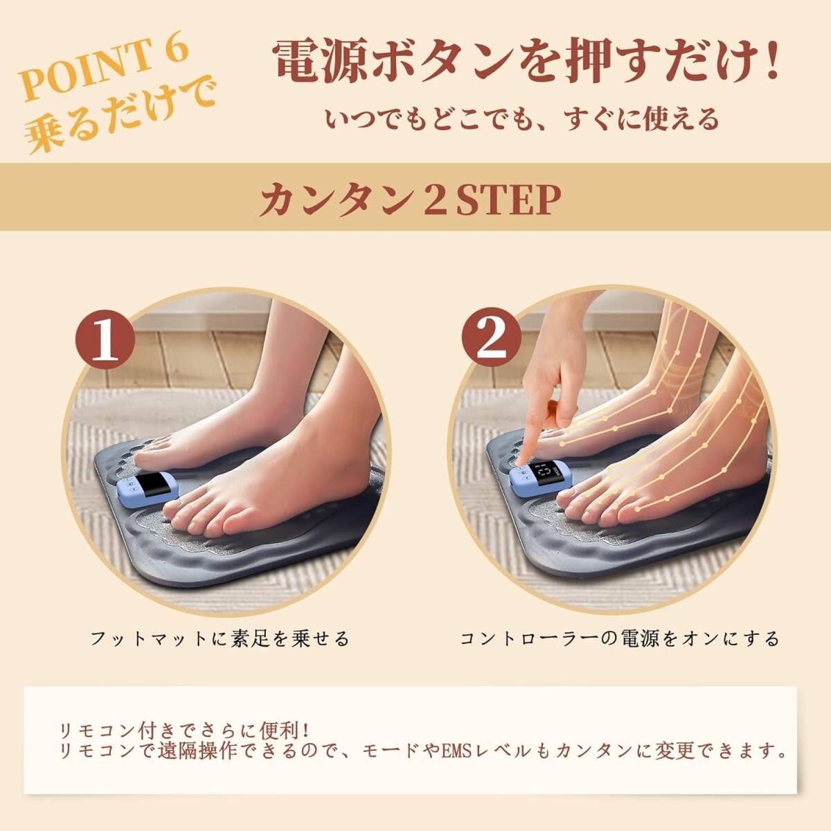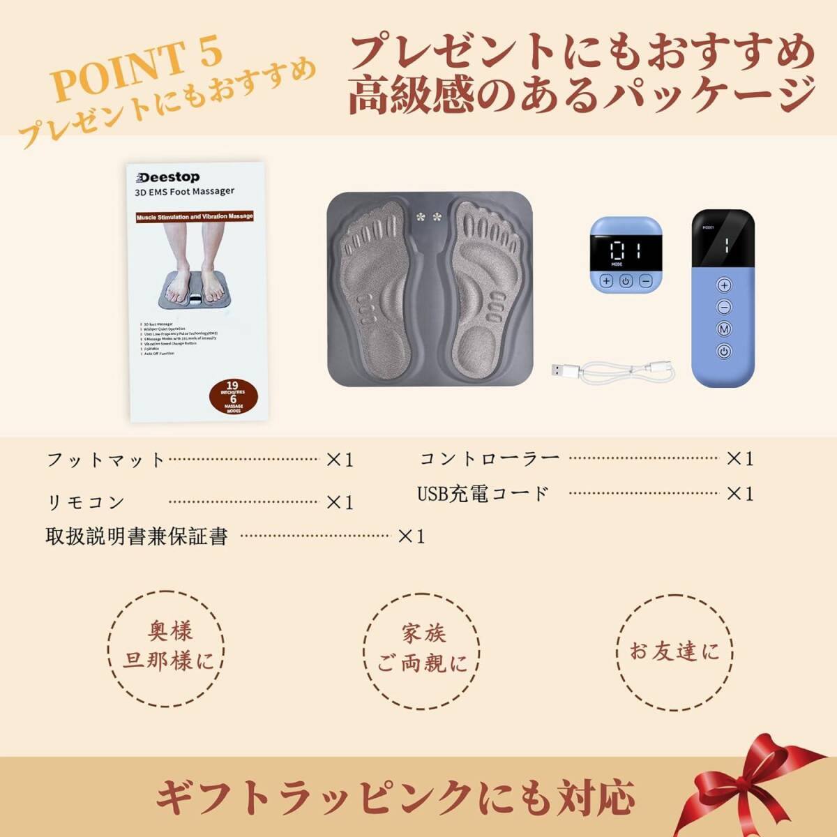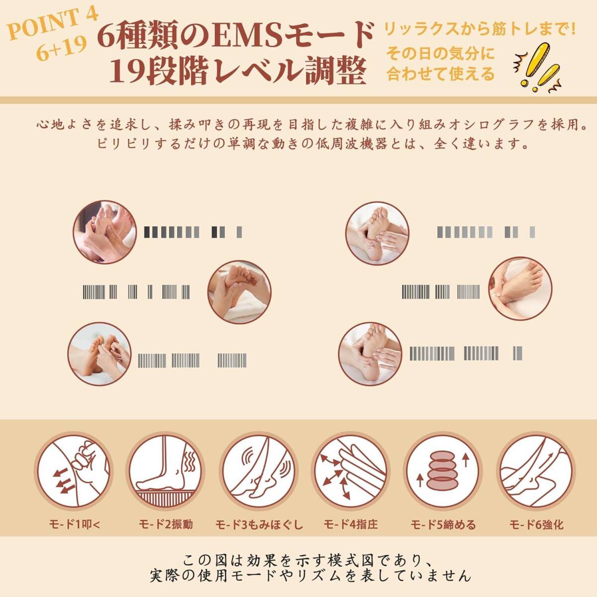 • 【機能】足裏のツボ精確対応、EMS低周波パルス技術、6つのモードと19段階の強度調整、リモコン操作、持ち運び便利