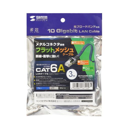 ※配送の送り主はサンワサプライ(株)と記載されています。沖縄・離島配送不可となります。 当店は正規販売代理店です。 特長 エンハンスドカテゴリ5の5.0倍、カテゴリ6の2.0倍の伝送帯域500MHzを実現!余裕の伝送特性でエラーを防ぐ高性能LANケーブルです。 10ギガビットイーサネット(10G BASE-T)に完全対応しているので、超高速ネットワーク環境でも使用可能です。 メッシュ素材採用で引張強度200%を実現。ケーブル厚2.3mmのフラットタイプで、カーペットの下や細いすき間に配線できます。また、ケーブル内部をモールド加工しているので、ケーブルのよりが戻りにくく、性能特性が落ちません。 メタルコネクタ、メタルハウジングケースの組合せで、側圧衝撃に強いコネクタです。 プラグのツメ(ラッチ)が折れるのを防ぐ、ツメ折れ防止カバー付きです。 気をつけておりますが、タイミングによっては在庫切れの場合があります。 仕様