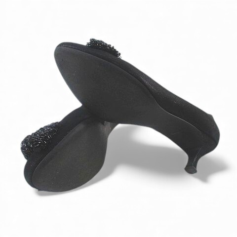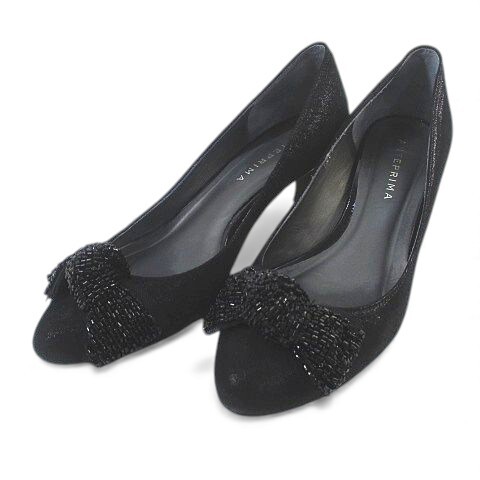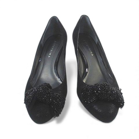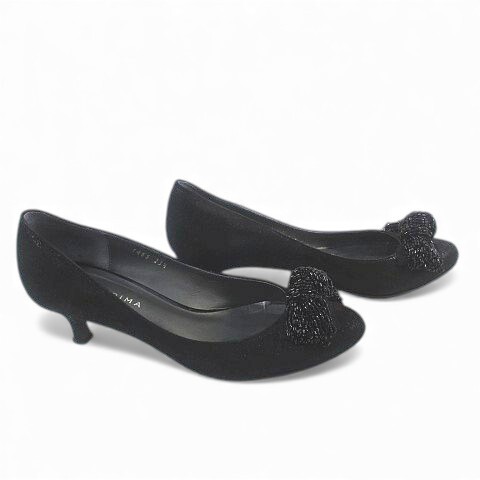 アンテプリマ ANTEPRIMA パンプス ビーズリボン レース ラメ 23.5cm ブラック 黒系 日本製 レディース