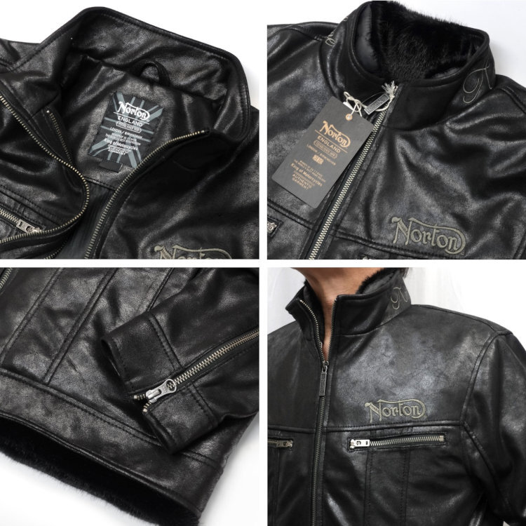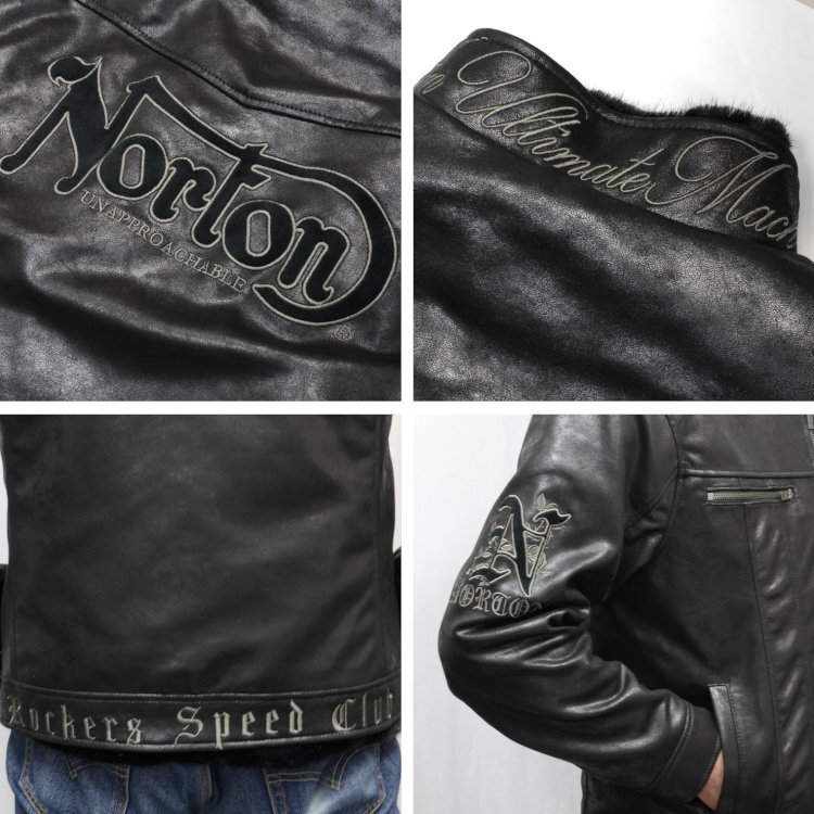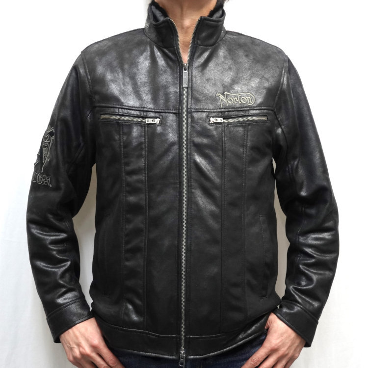 ノートン Nortonライナーベスト付ムラフェイクレザーシングルライダースジャケット 253N1702 ブラック XXL バイカー バイク ロッカーズ