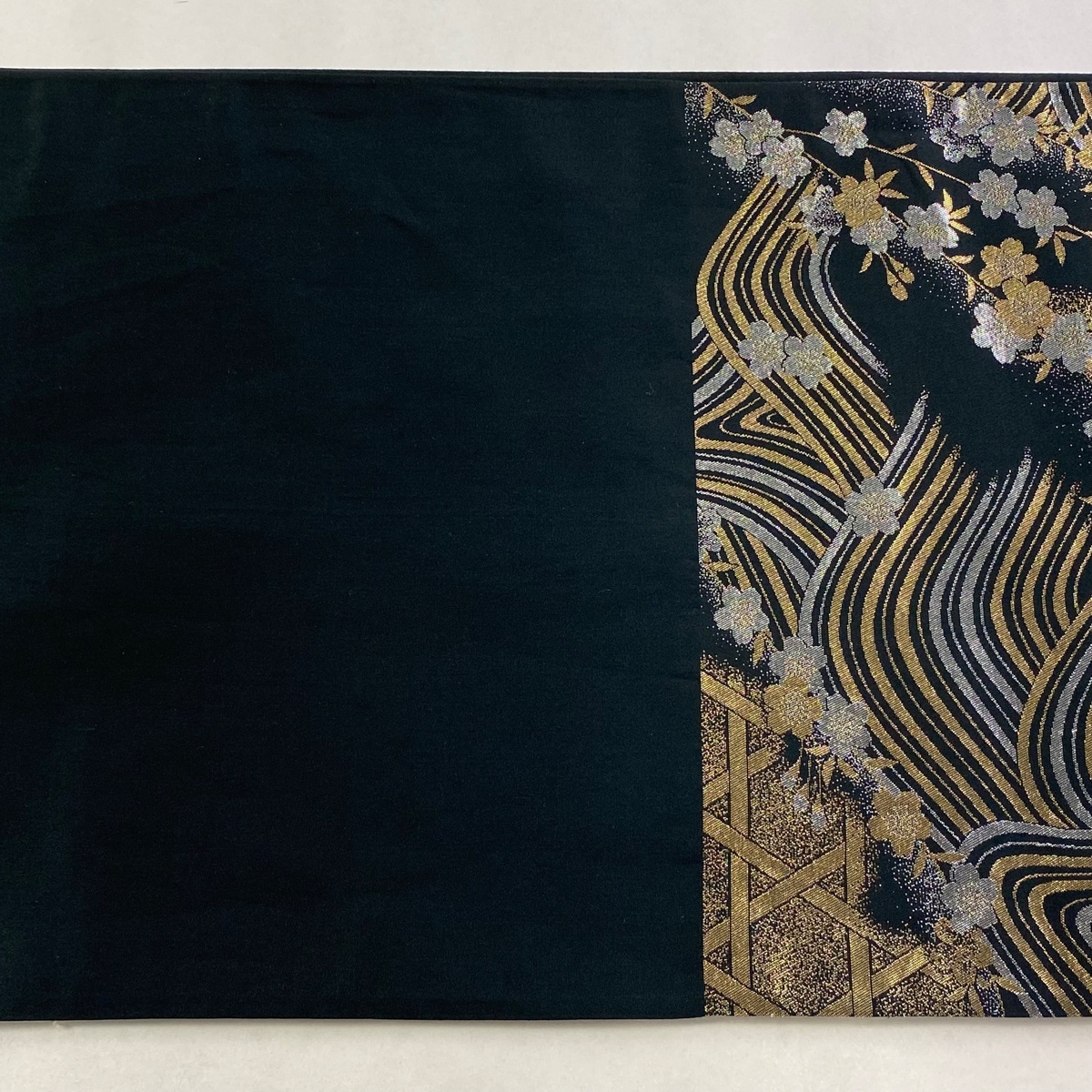 | 袋帯 美品 秀品 振袖向き 蝶 桜 箔 金銀糸 黒 六通 正絹 【中古】 |