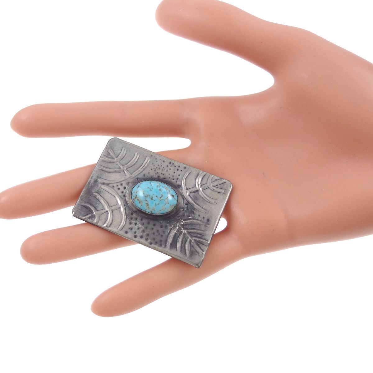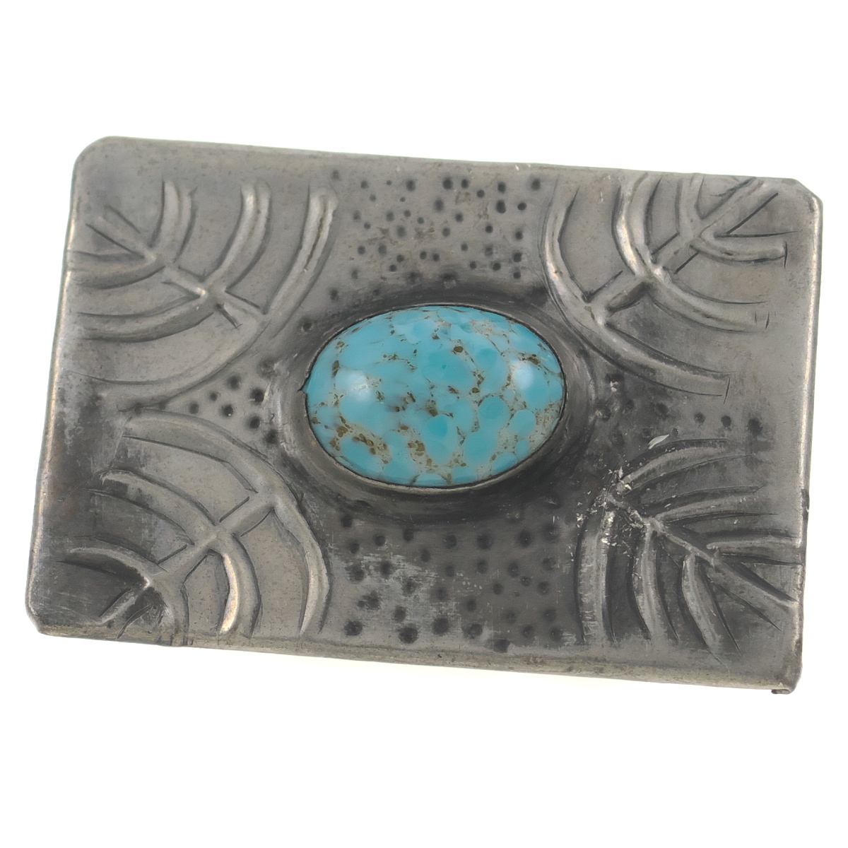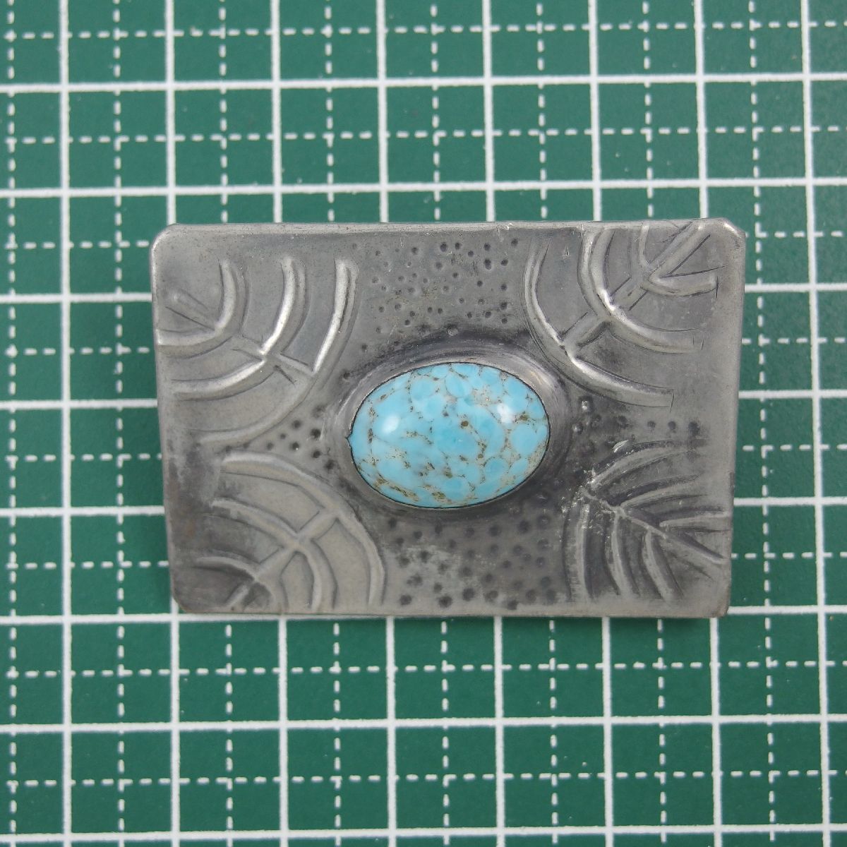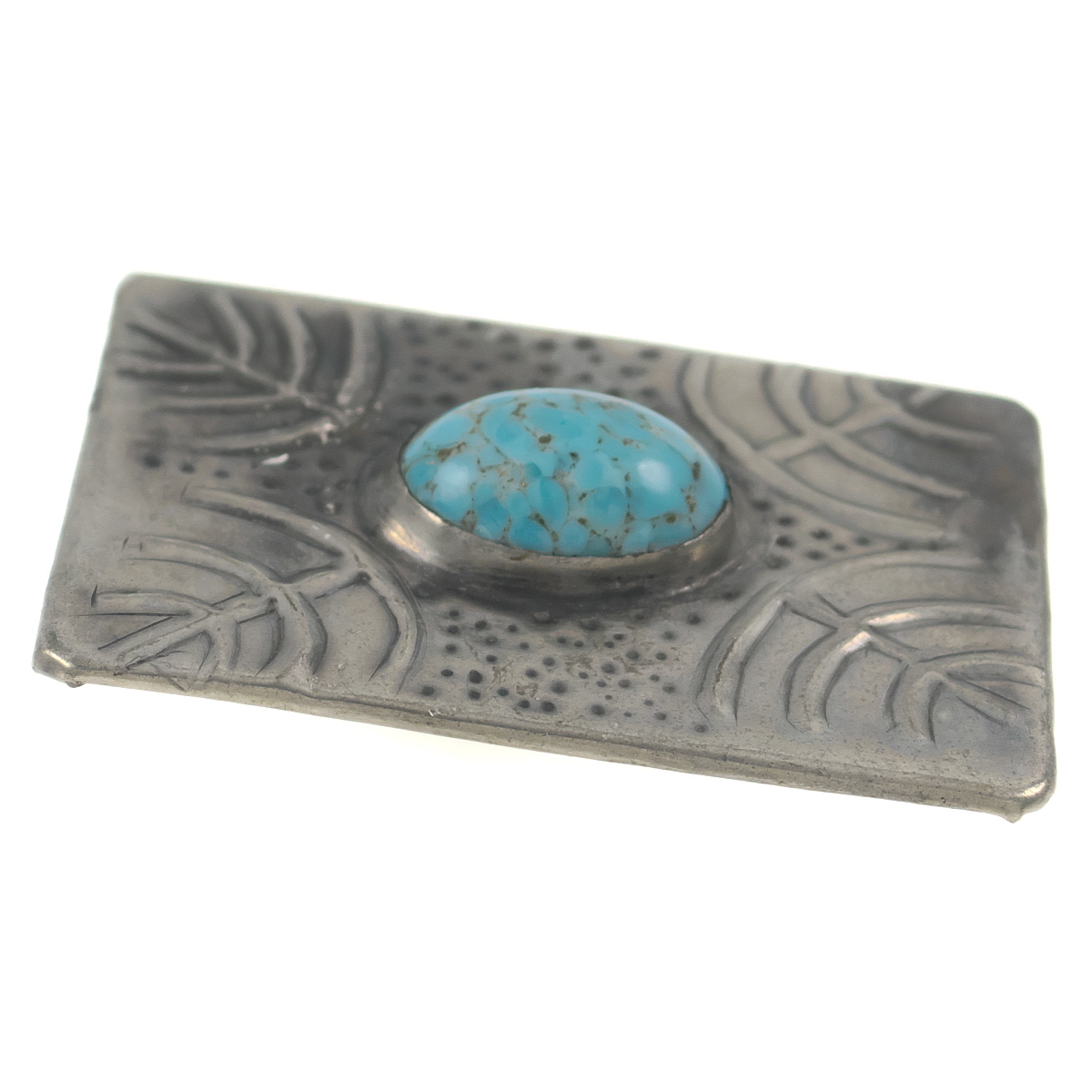 UK4365◆ スクエア ターコイズ色カボション&リーフモチーフ 英国 イギリス ◆ ヴィンテージブローチ ◆