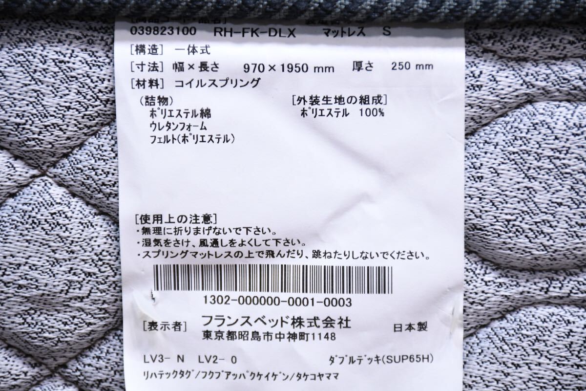 展示品 フランスベッド Rehatech リハテック RH-FK-DLX 電動ベッド用 S/シングルサイズ マットレスの出品です。