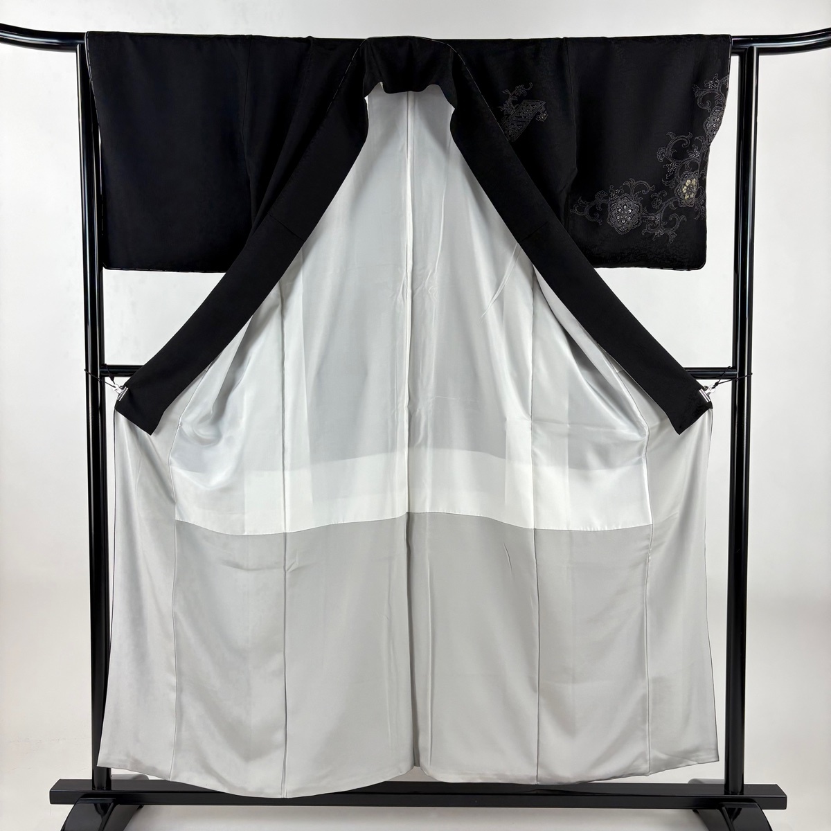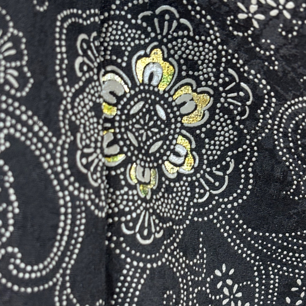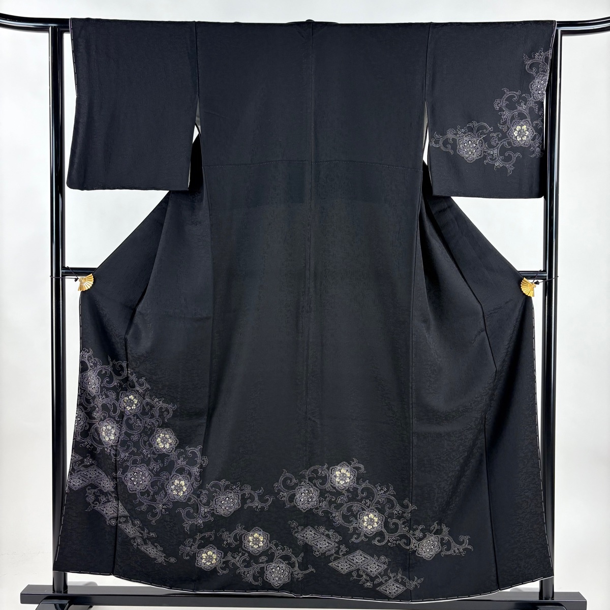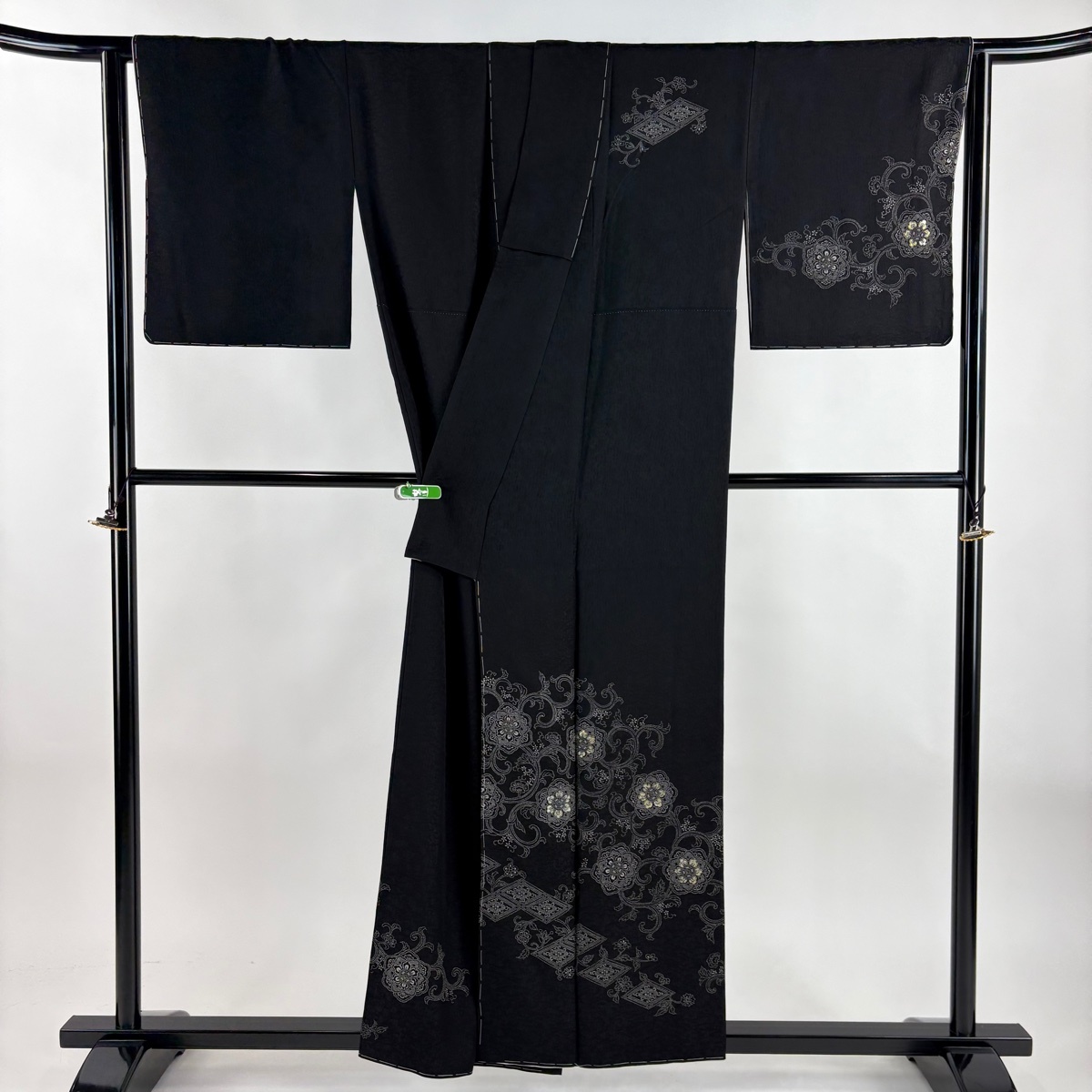 | 付下げ 逸品 花唐草 菱 金銀彩 黒 袷 身丈156 裄丈63.5 S 正絹 【中古】 |